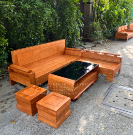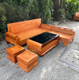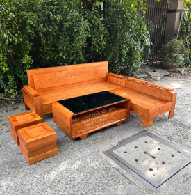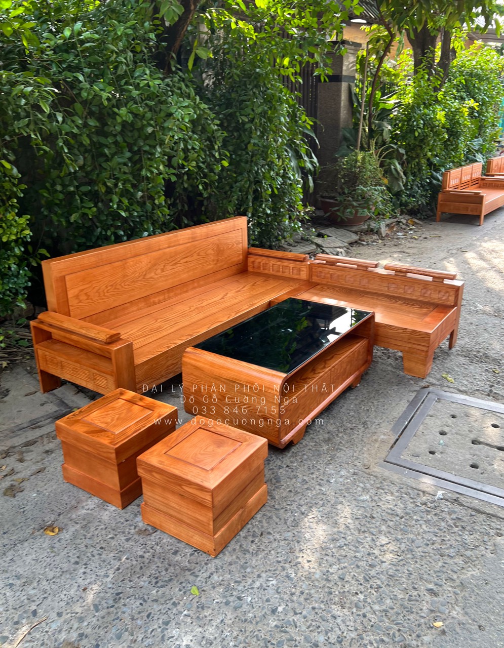 Ghế Sofa Góc L Gỗ Sồi Nga Lau Màu Gõ Đỏ 2mx1m8 - Bàn Hiện Đại
