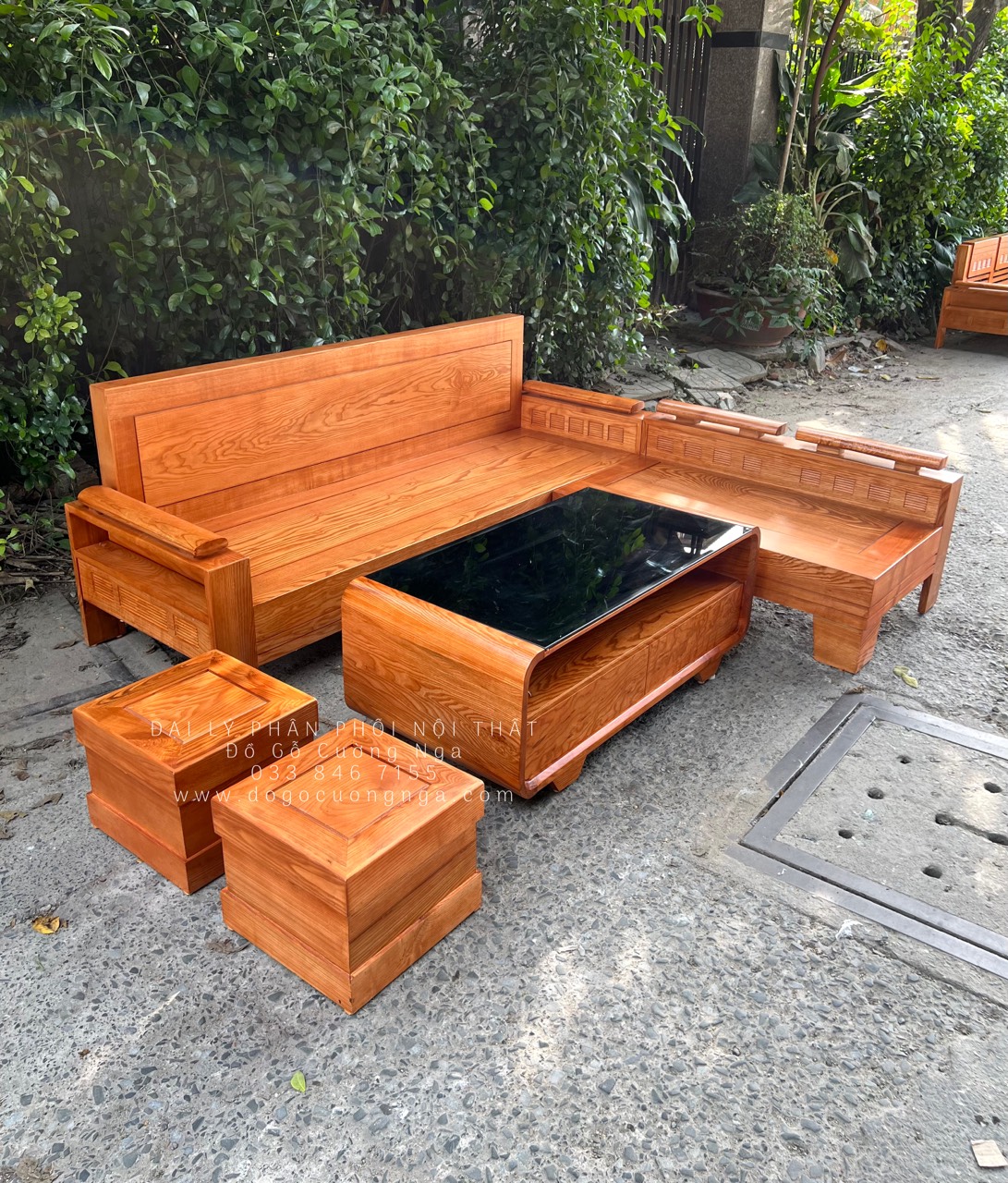 Chi tết bộ sofa góc L gỗ sồi nga hiện đại