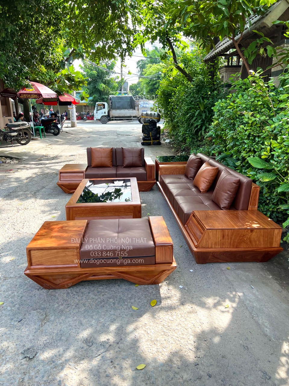 Kích Thước Bộ Sofa Gỗ Hương Vàng Hiện Đại