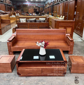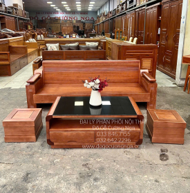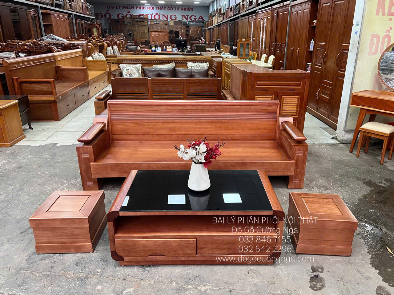 Ghế Sofa Văng Gỗ Hương Kết Hợp Bàn Boom Hiện Đại