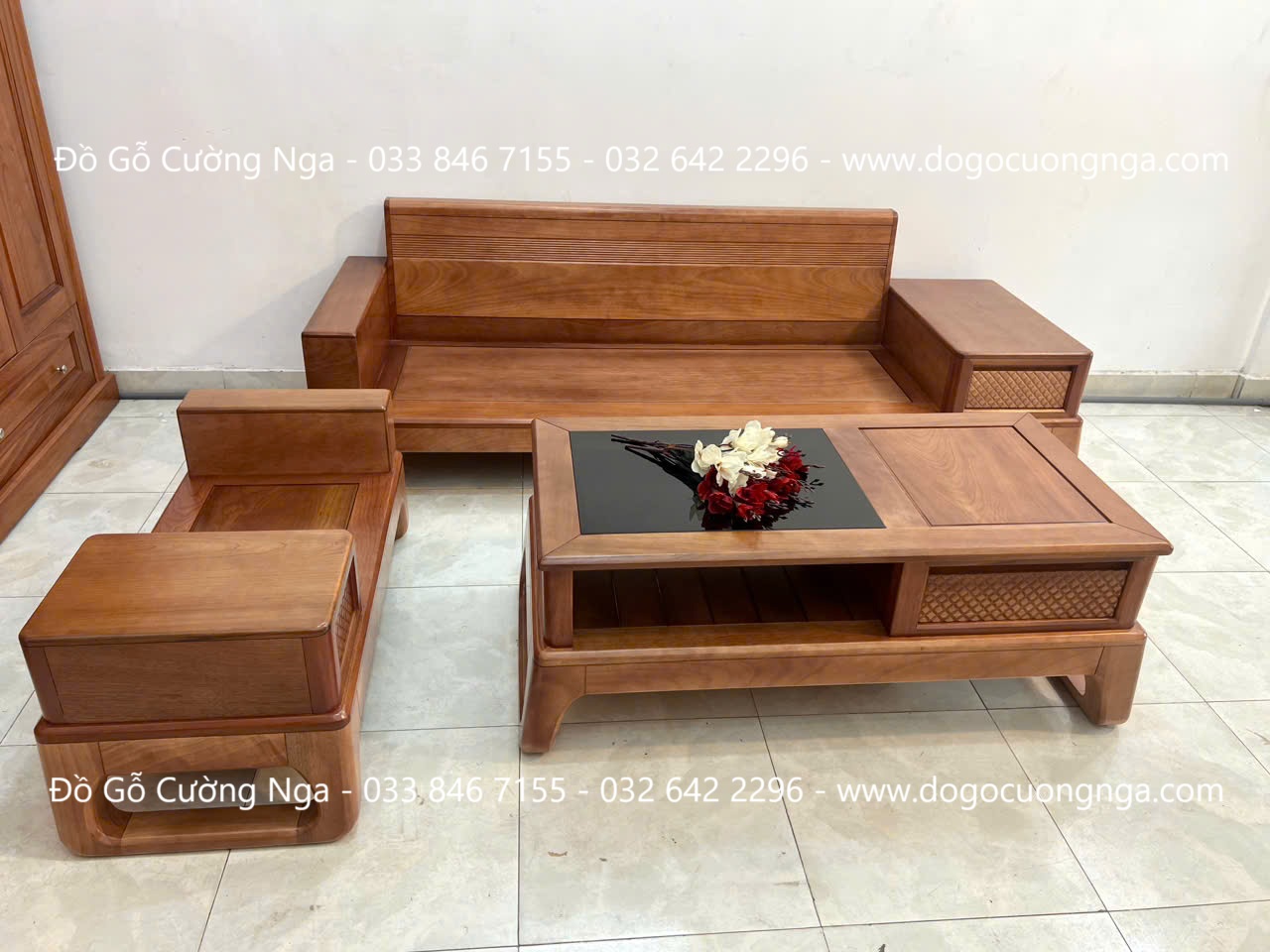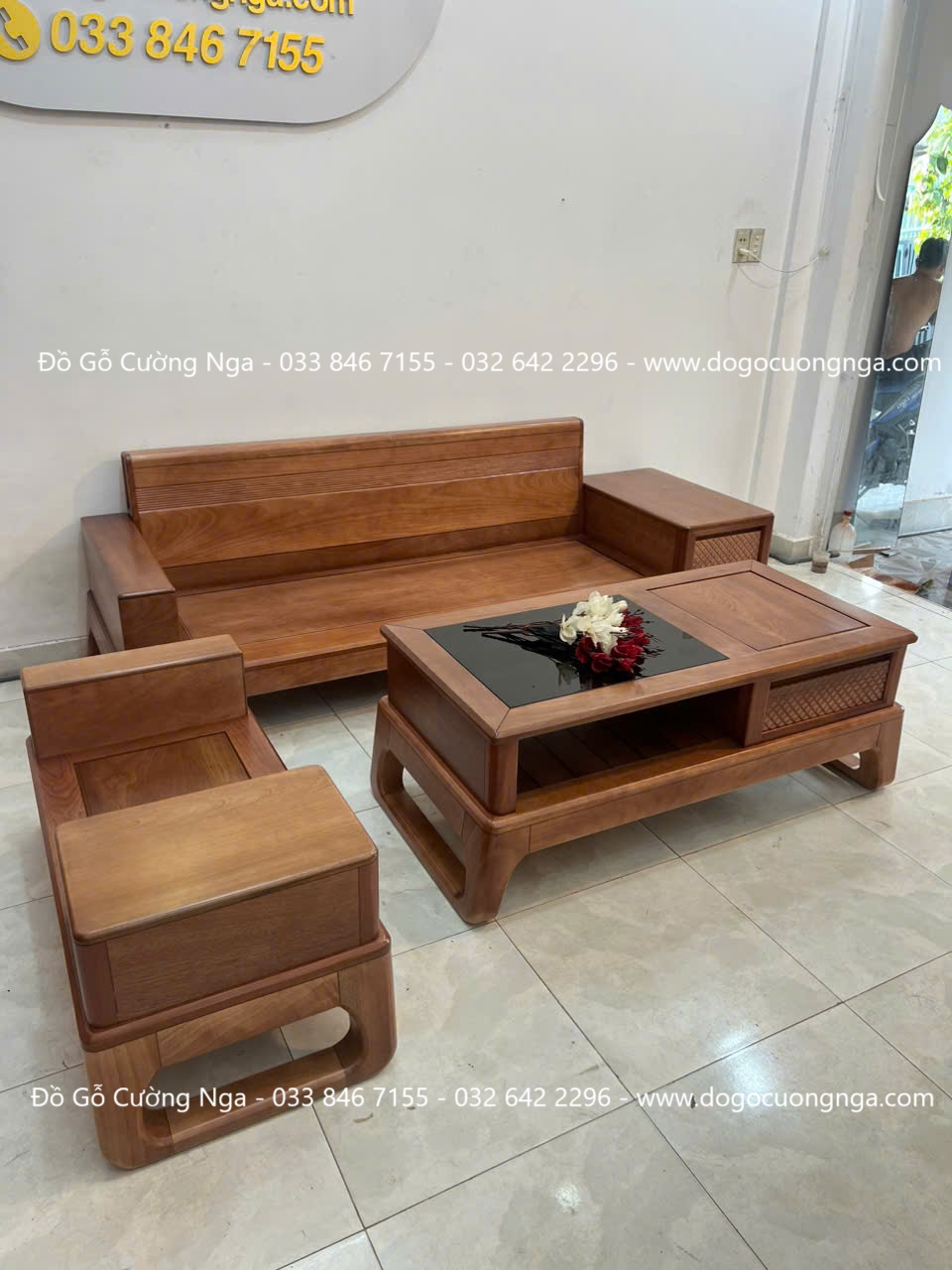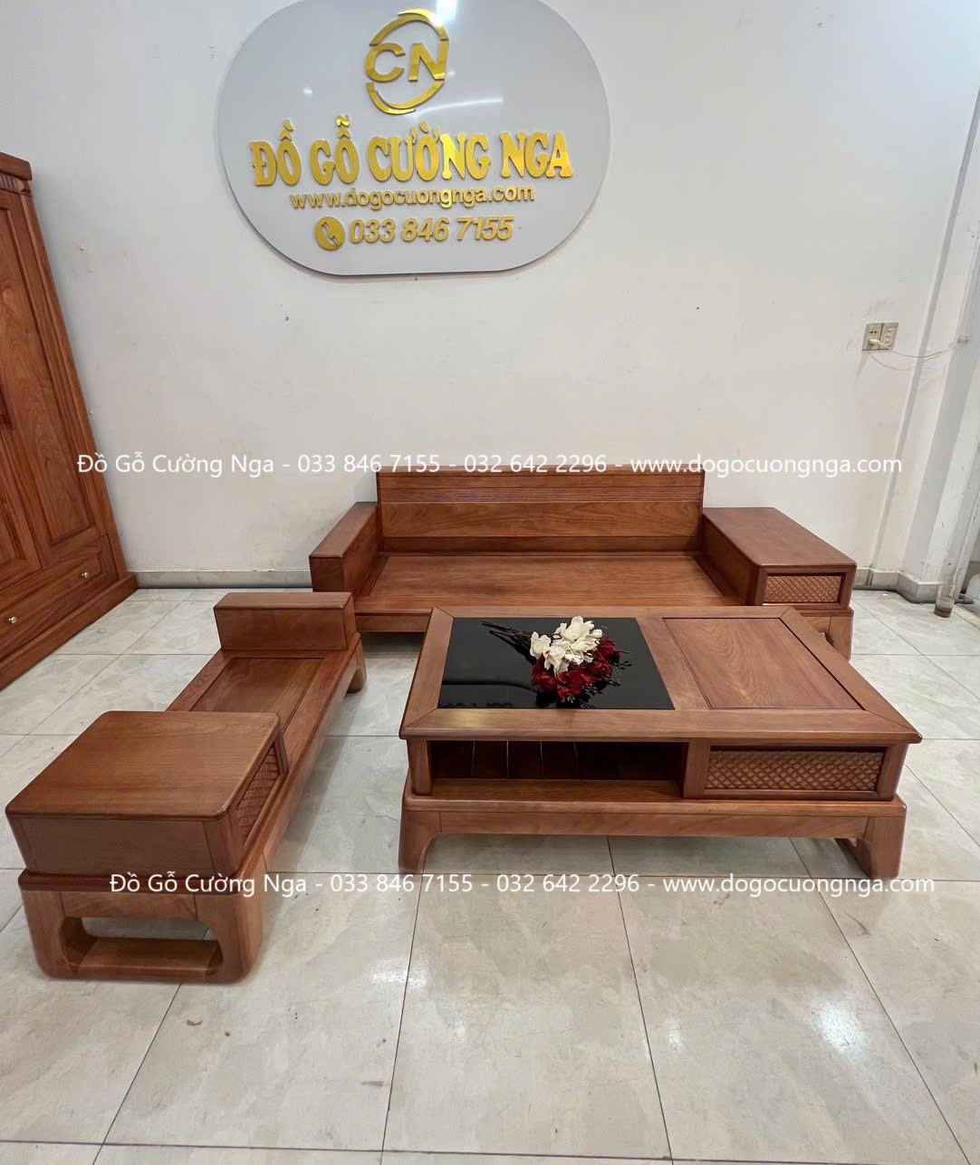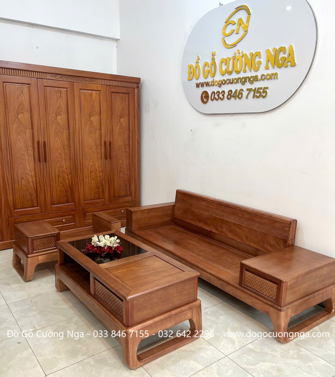 Ghế Sofa Văng Gỗ Xoan Đào Chân Choãi Hiện Đại 3 Món