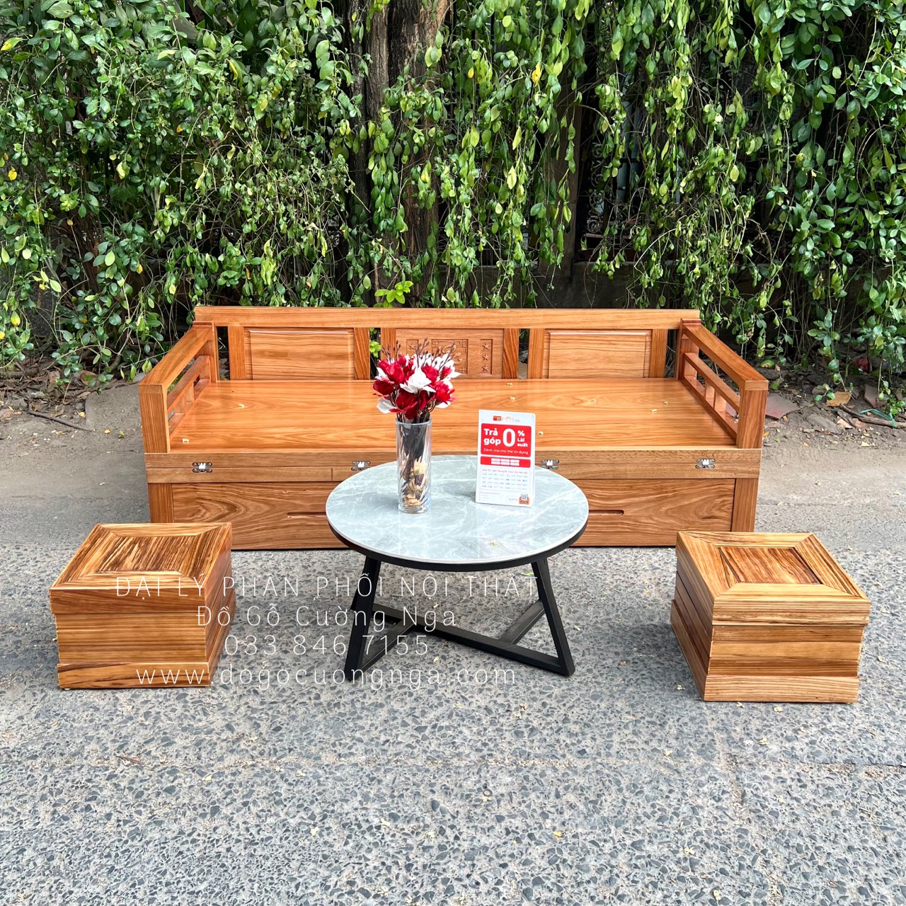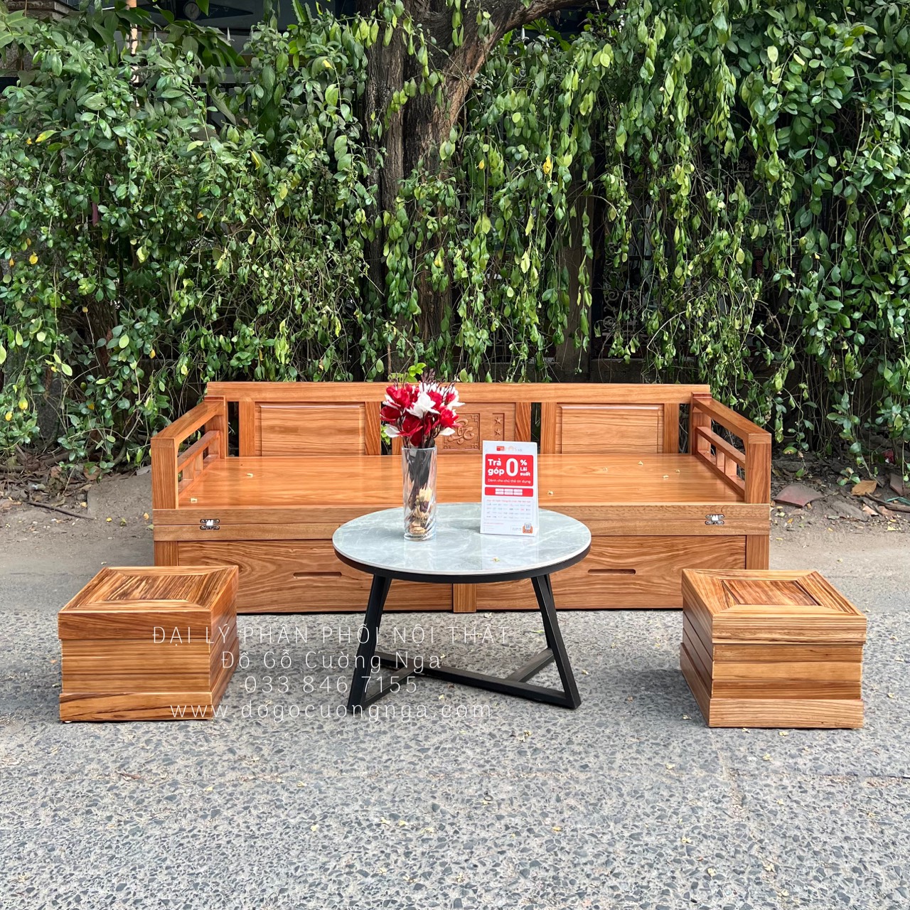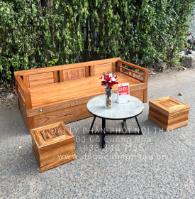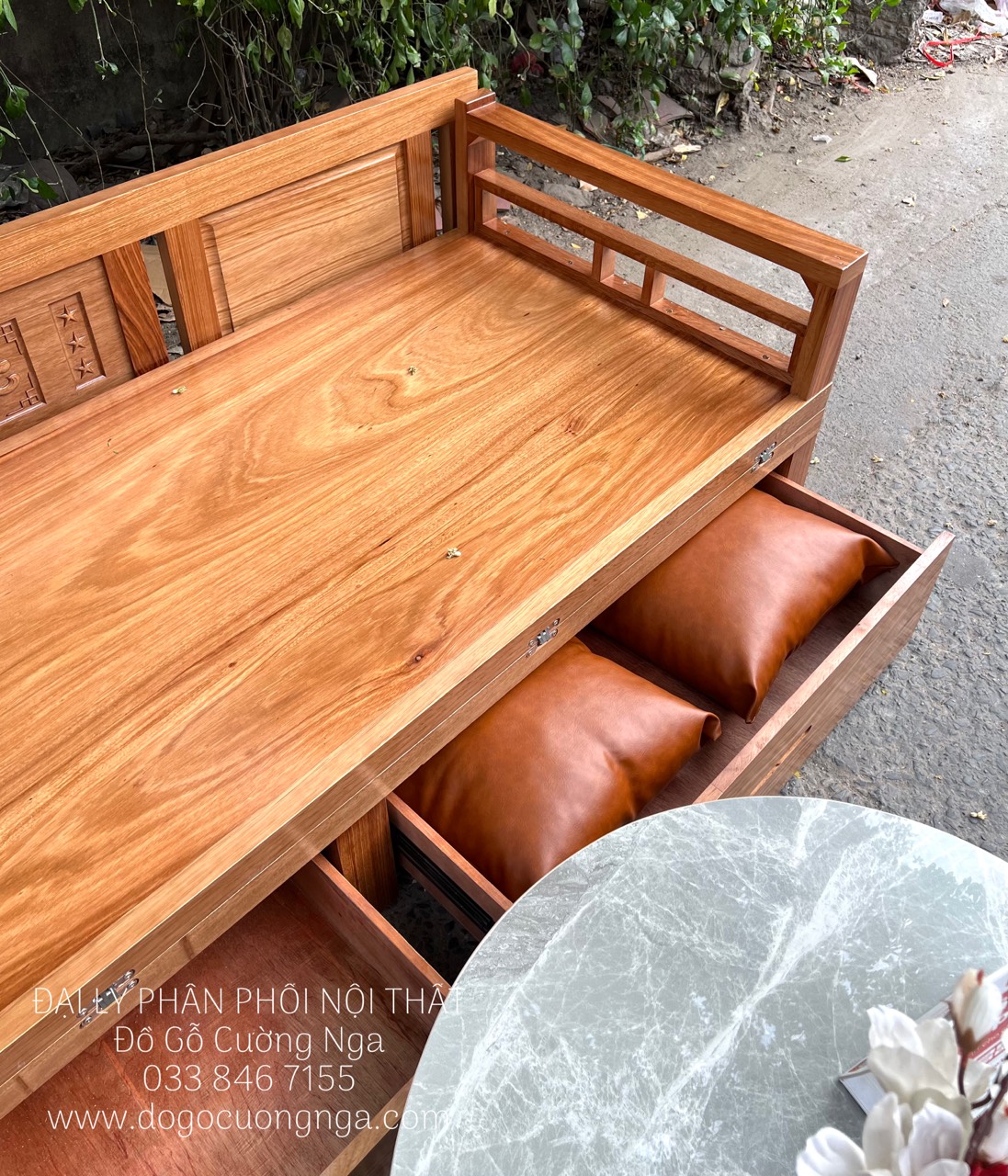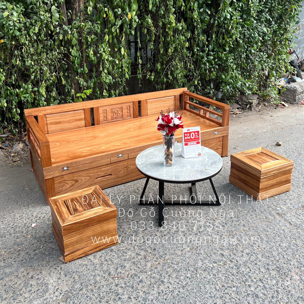 Giường ghế gỗ hương xám ngăn kéo + bàn trà 4 món