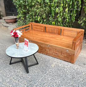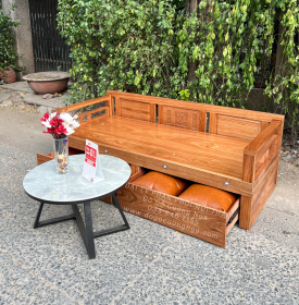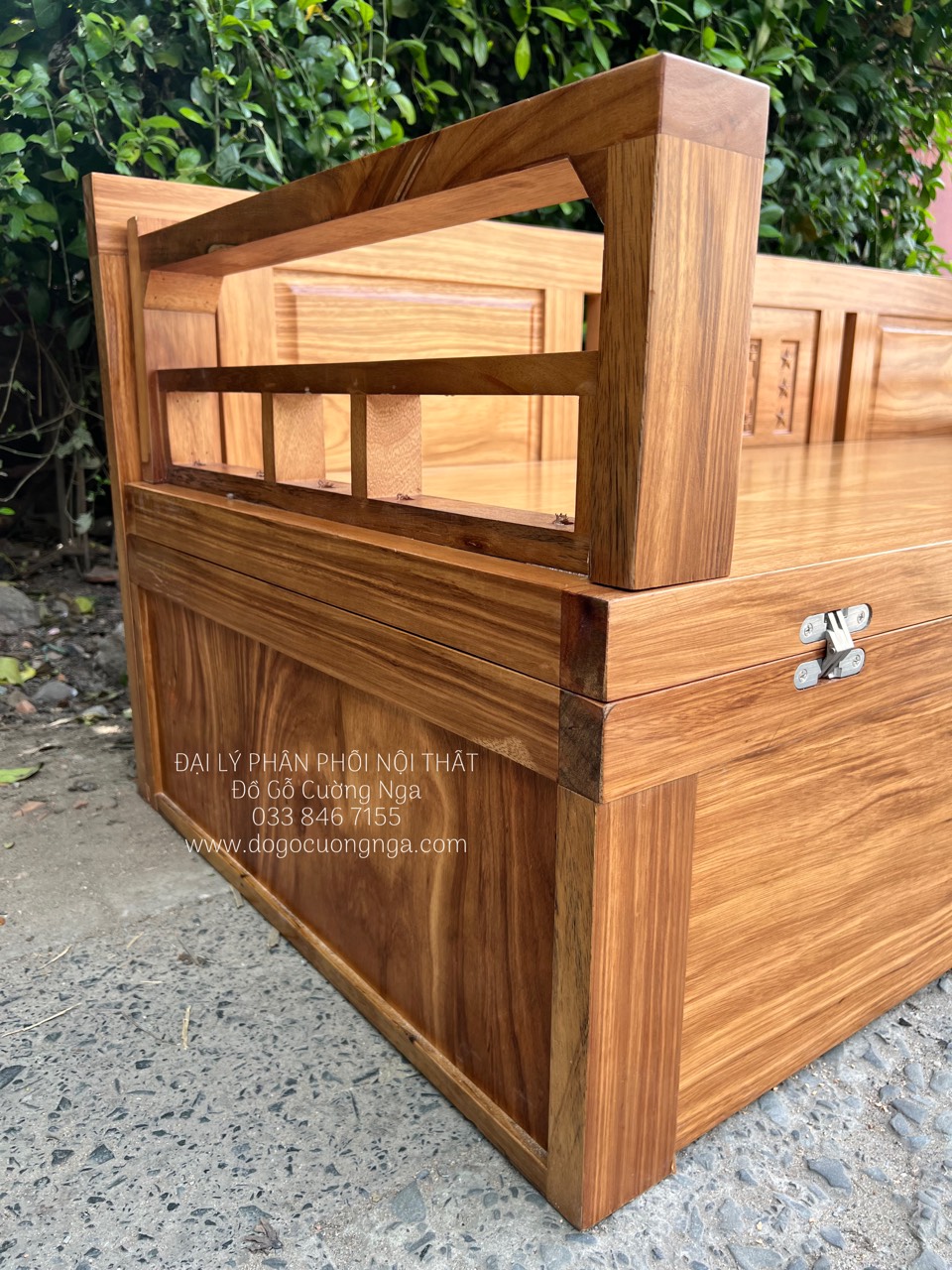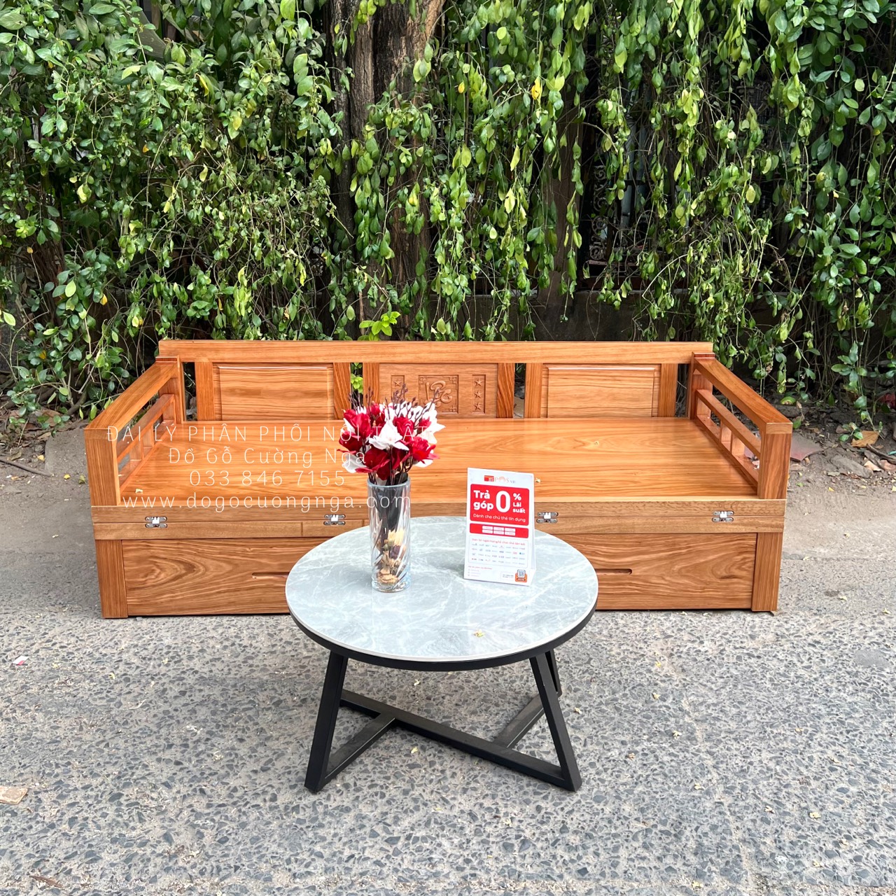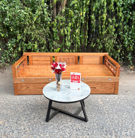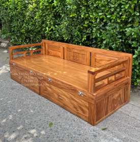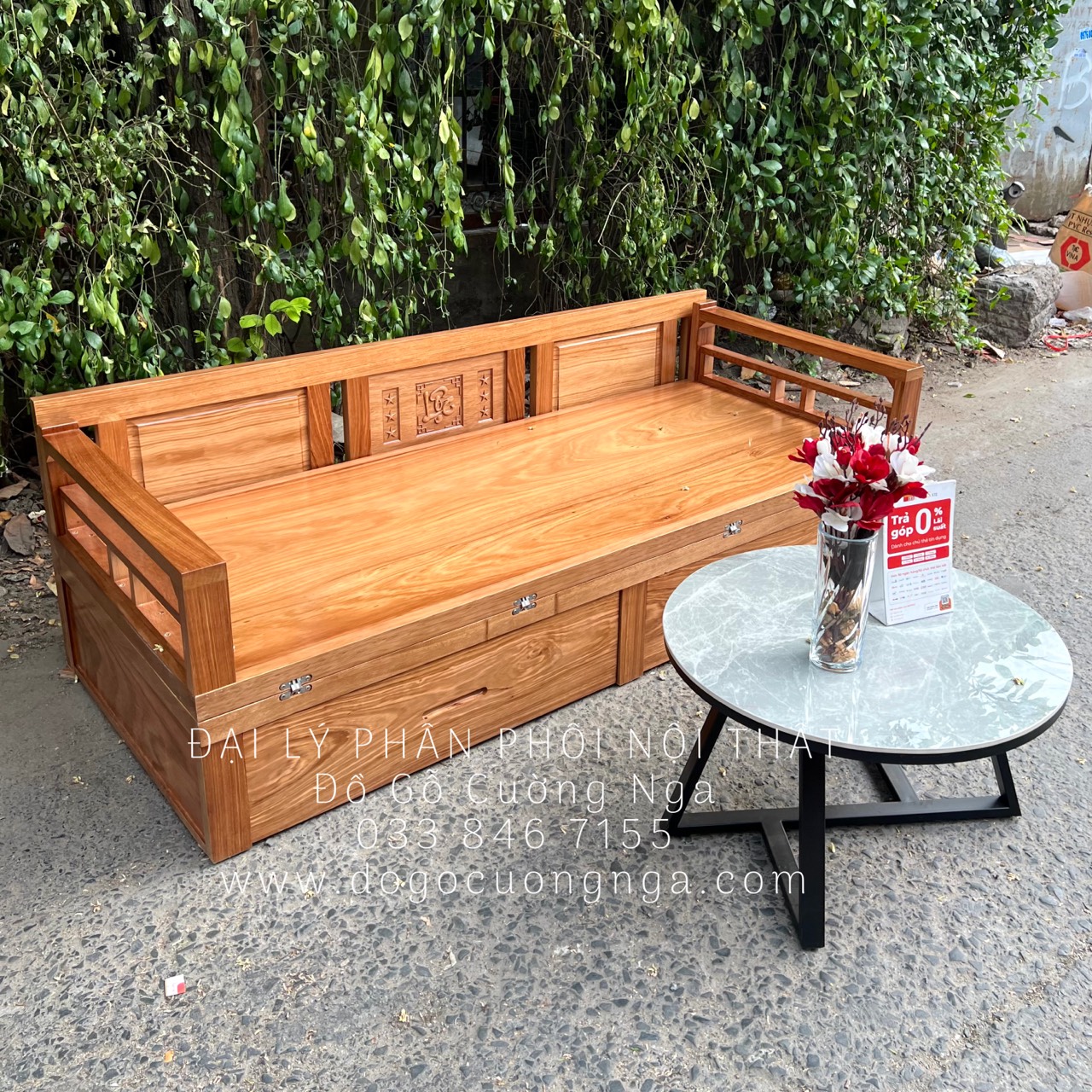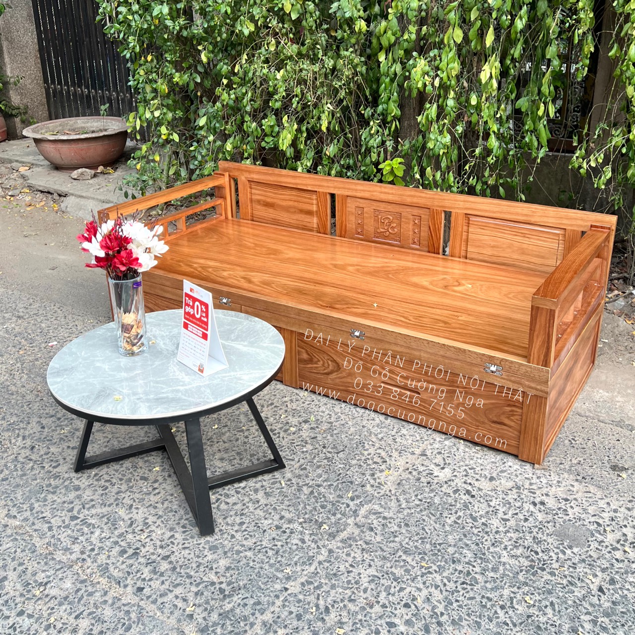 Giường ghế gỗ hương xám ngăn kéo + bàn trà 4 món