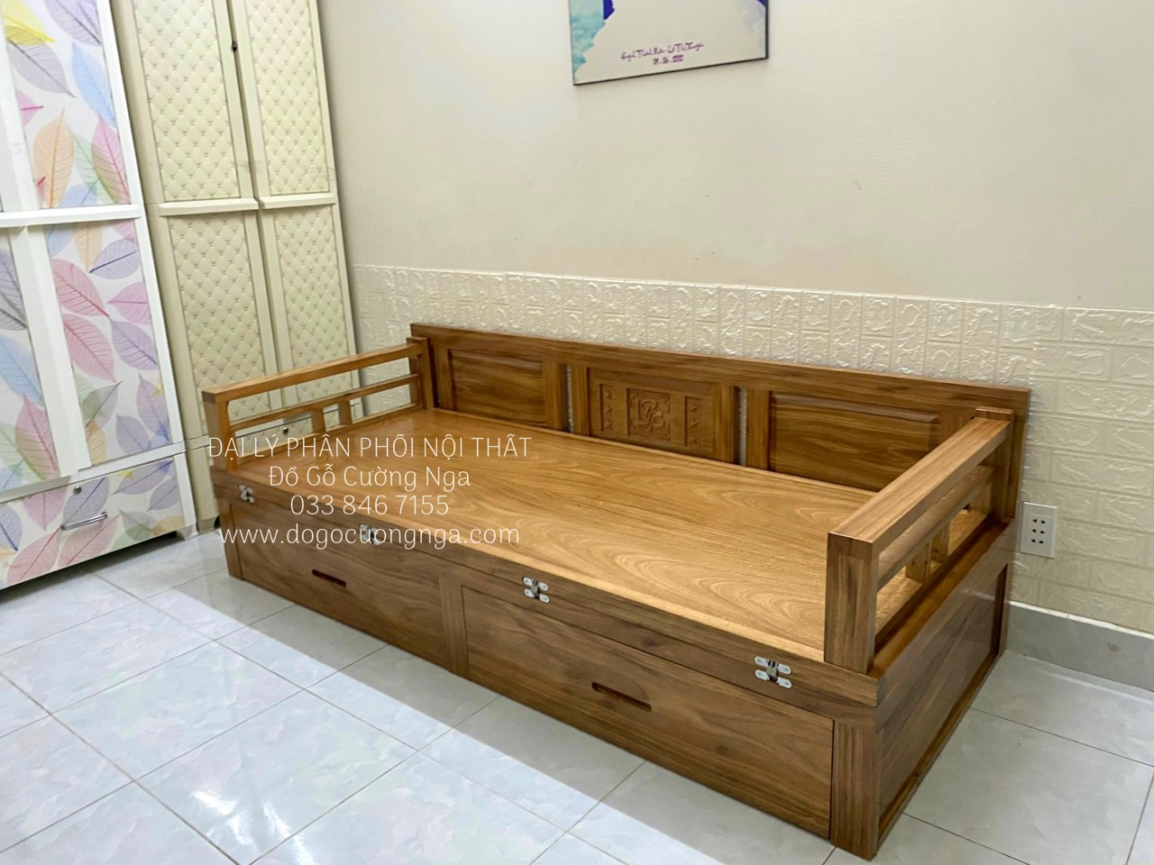 Giường Gấp Đa Năng Gỗ Hương Xám Ngăn Kéo - Kèm Bàn Trà Đôn Ngồi Giá Rẻ
