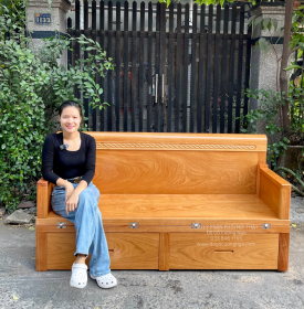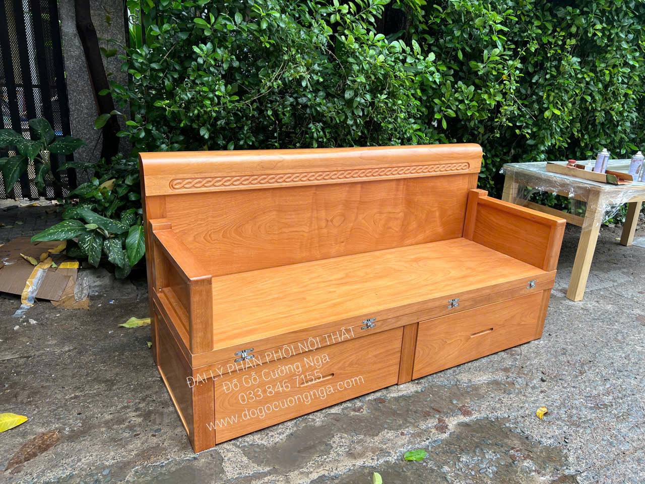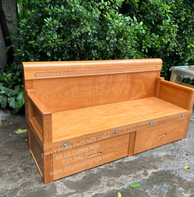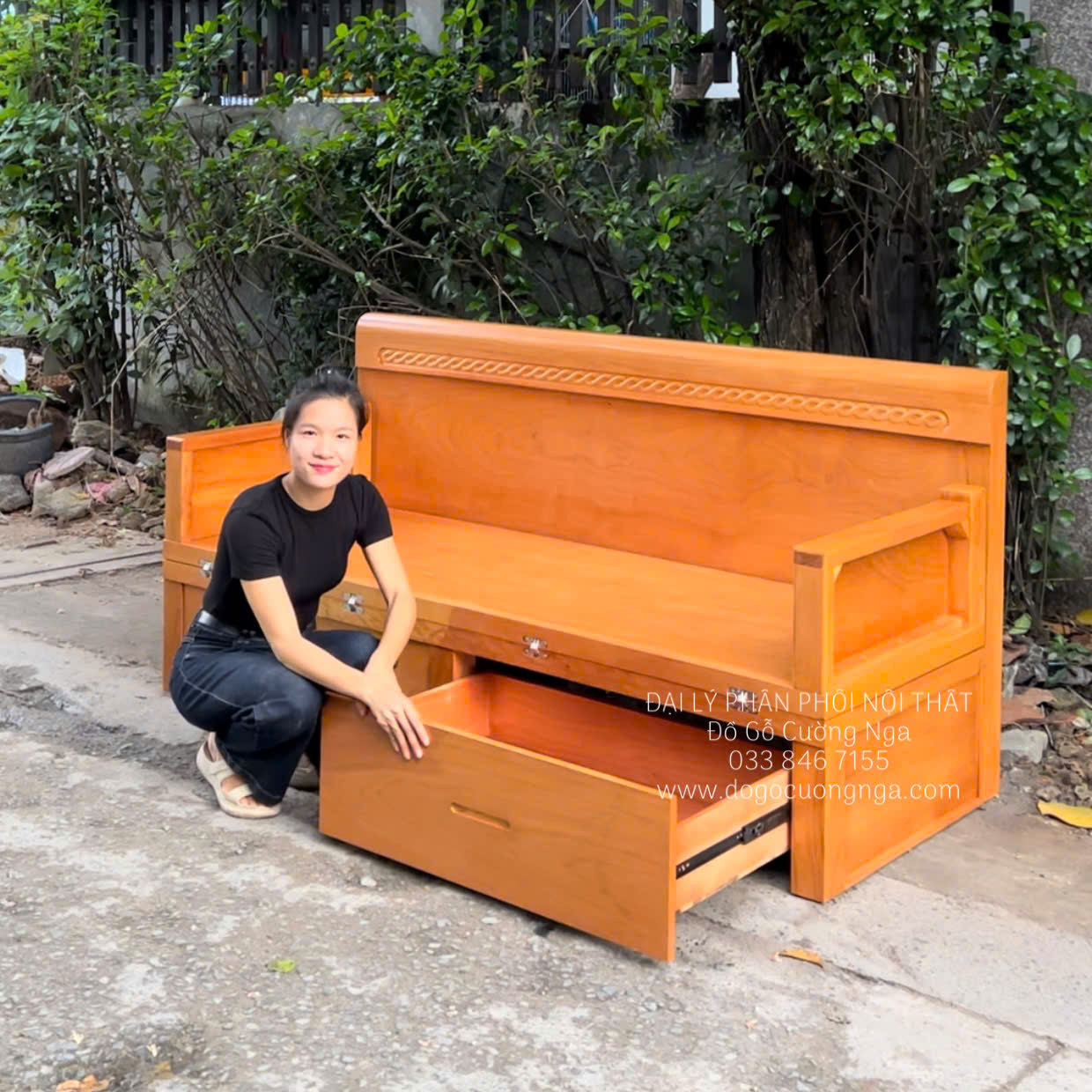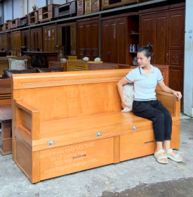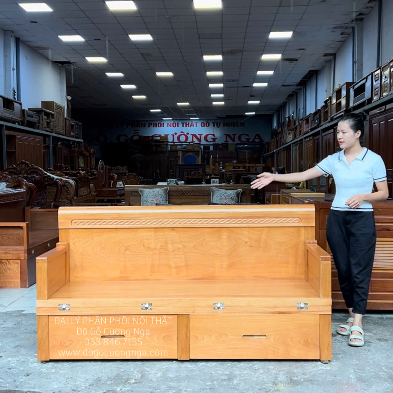 Giường gấp gỗ gõ đỏ 2 ngăn kéo kèm bàn sofa đôn và nệm