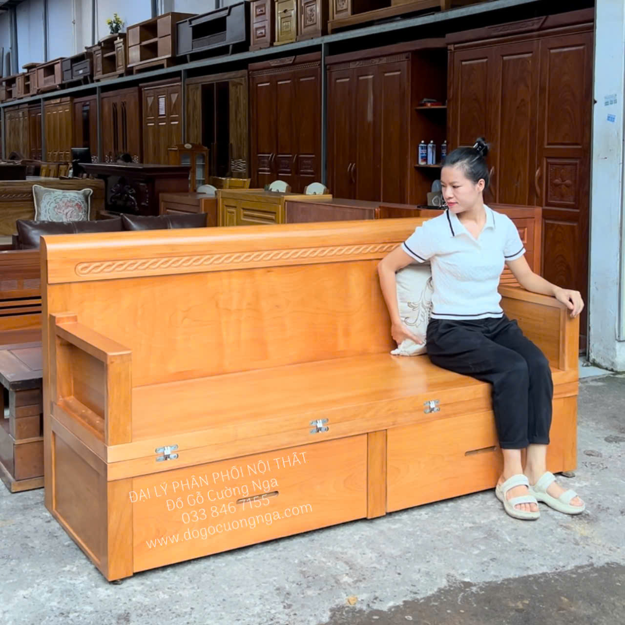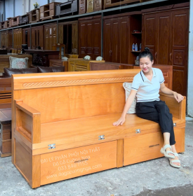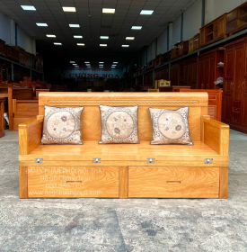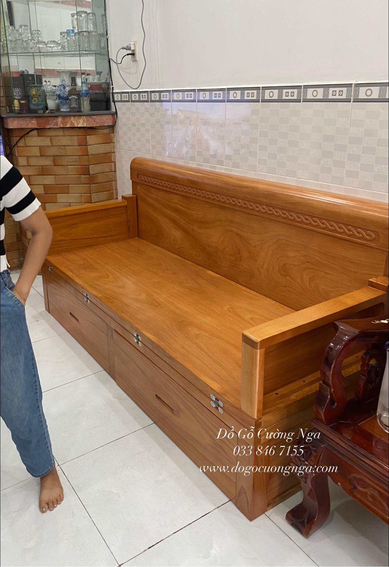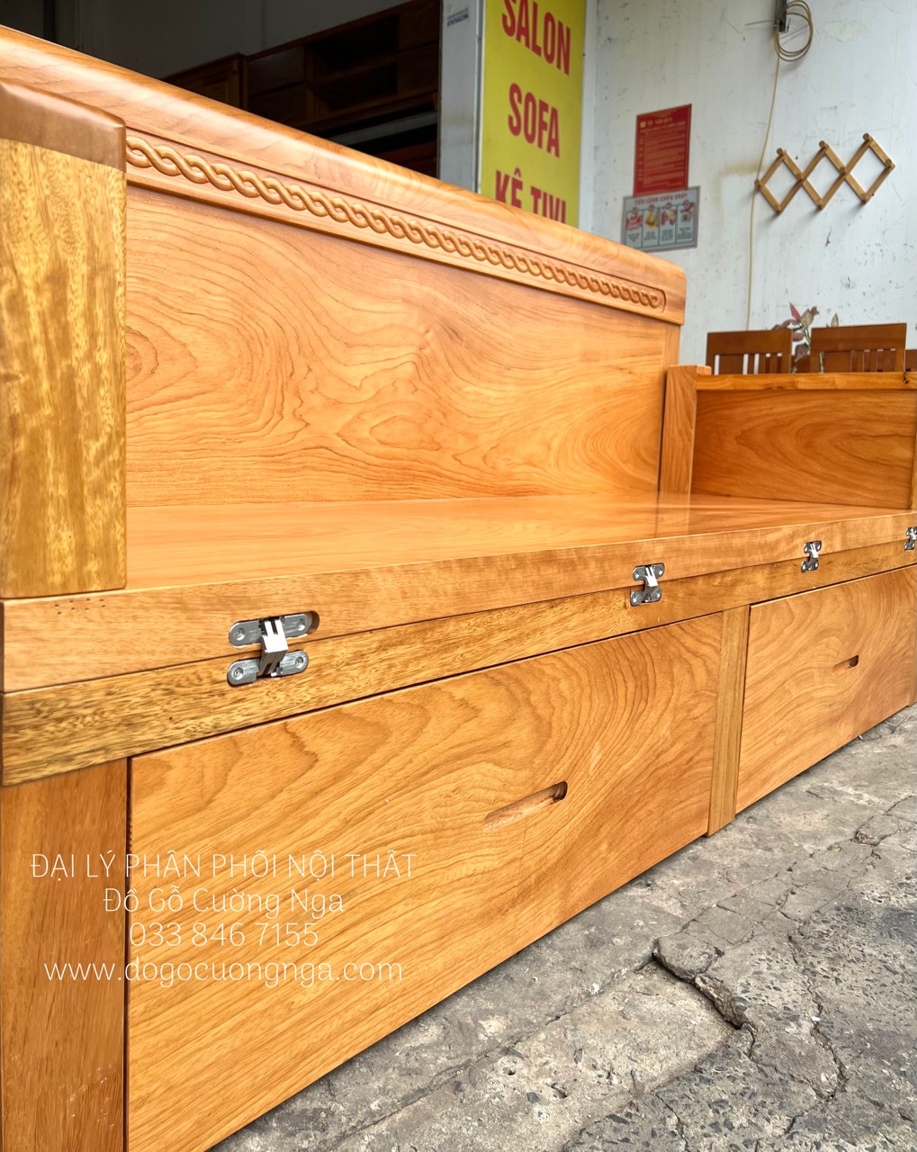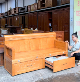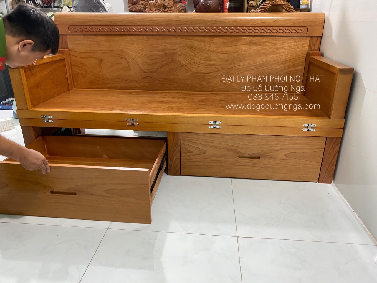 Giường gấp gỗ gõ đỏ 2 ngăn kéo giao khách