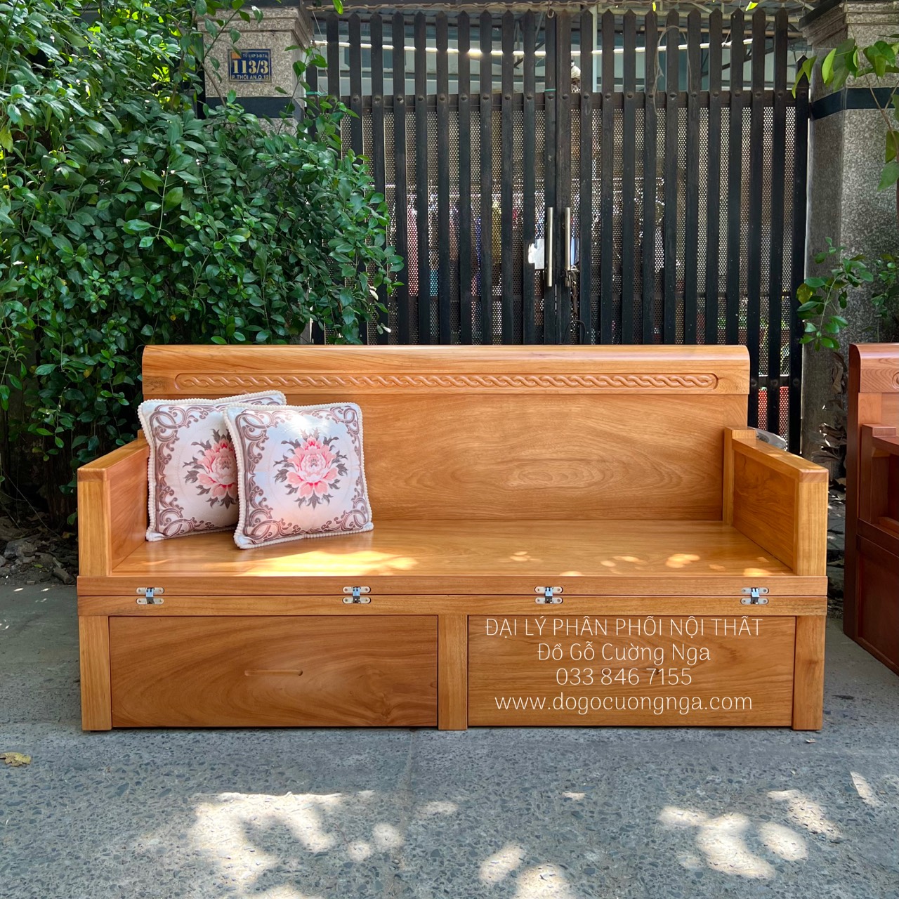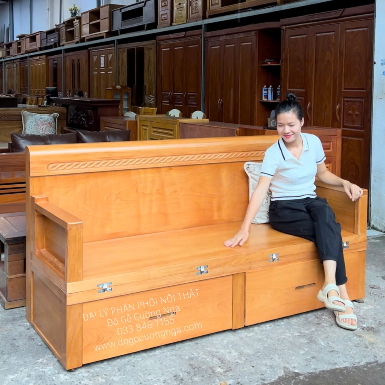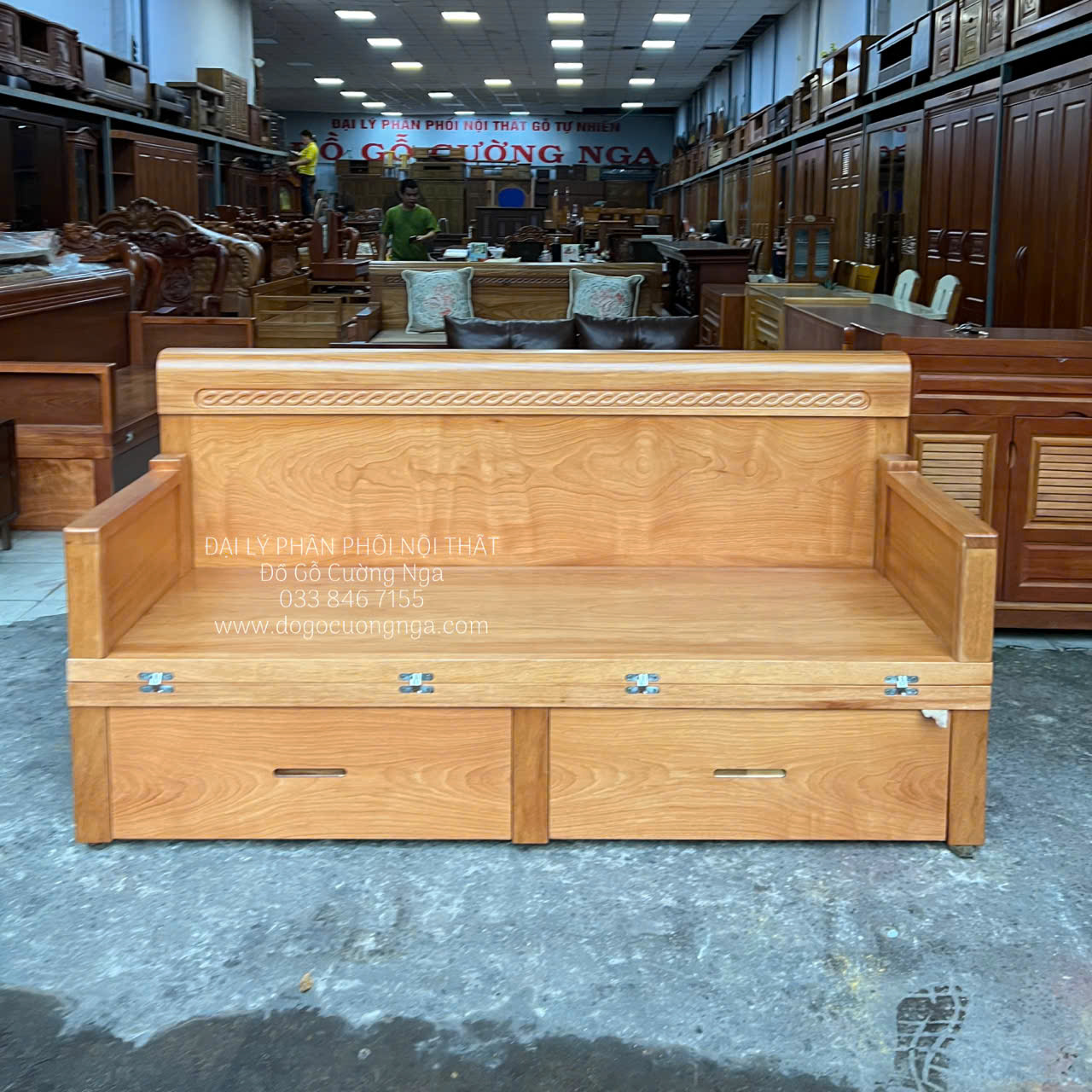 Giường gấp gỗ gõ đỏ 2 ngăn kéo giao khách
