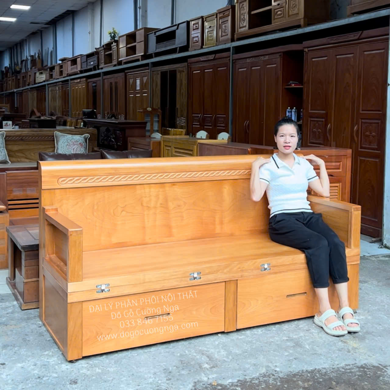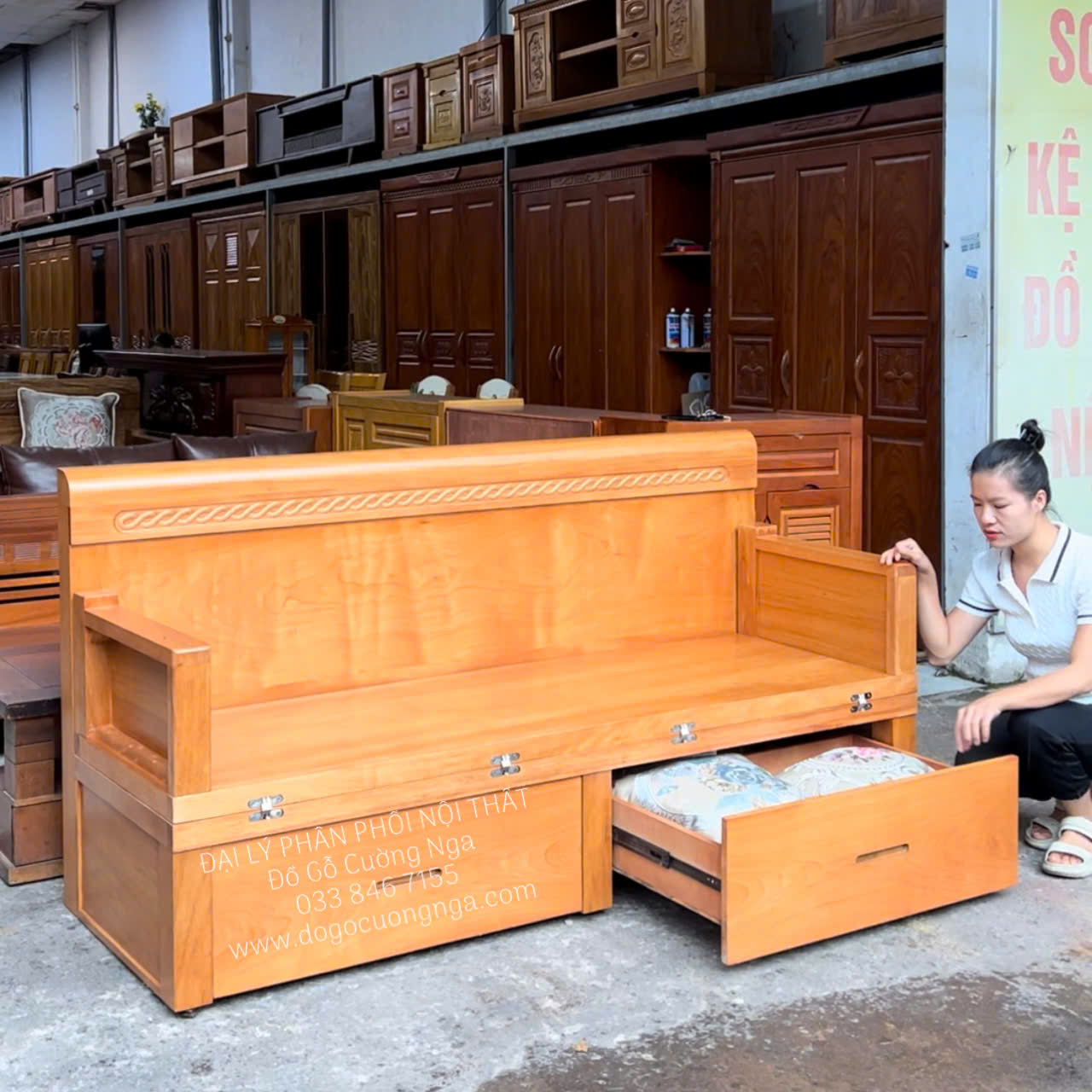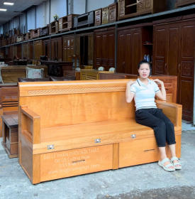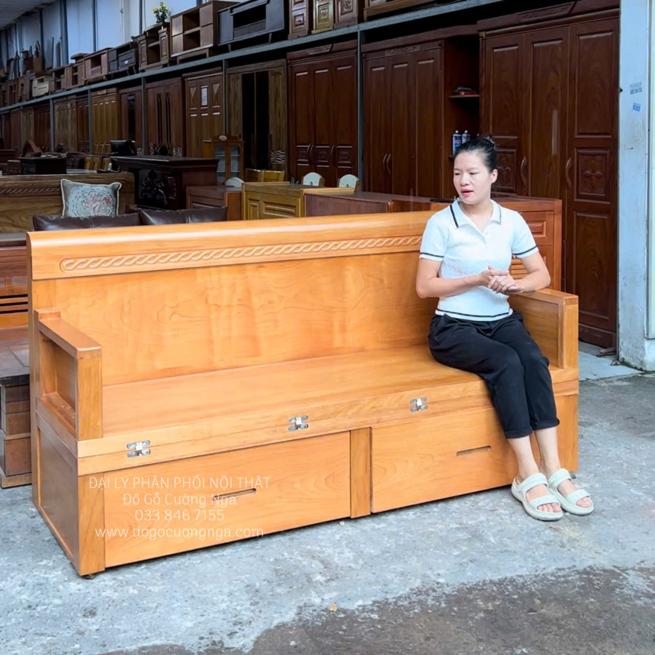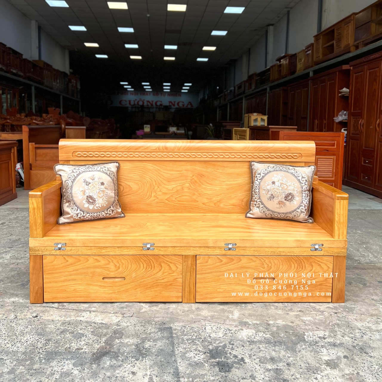 Giường gấp gỗ gõ đỏ 2 ngăn kéo giao khách