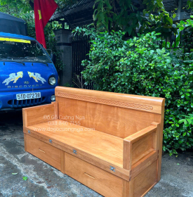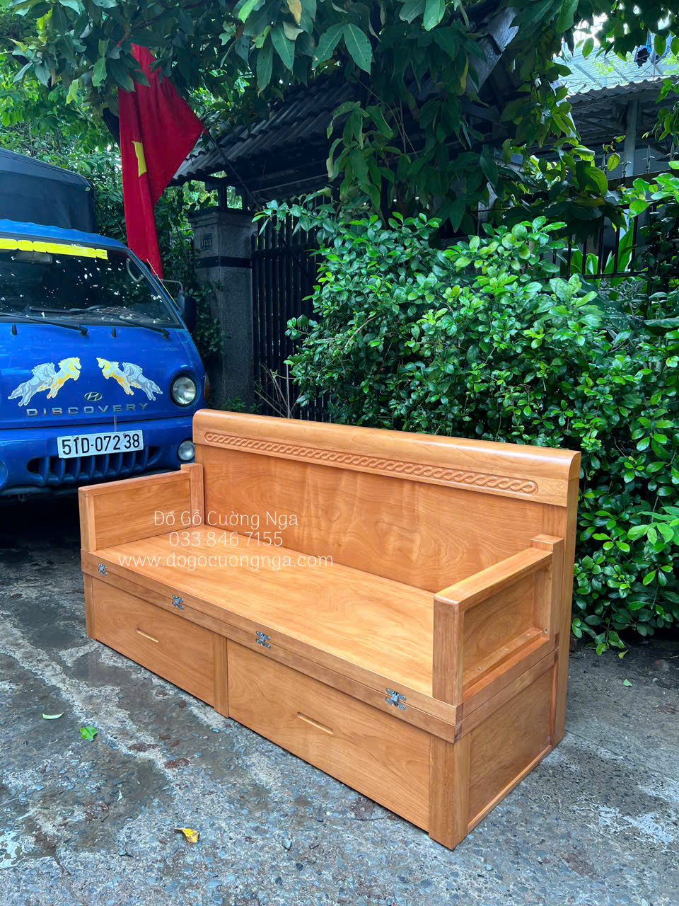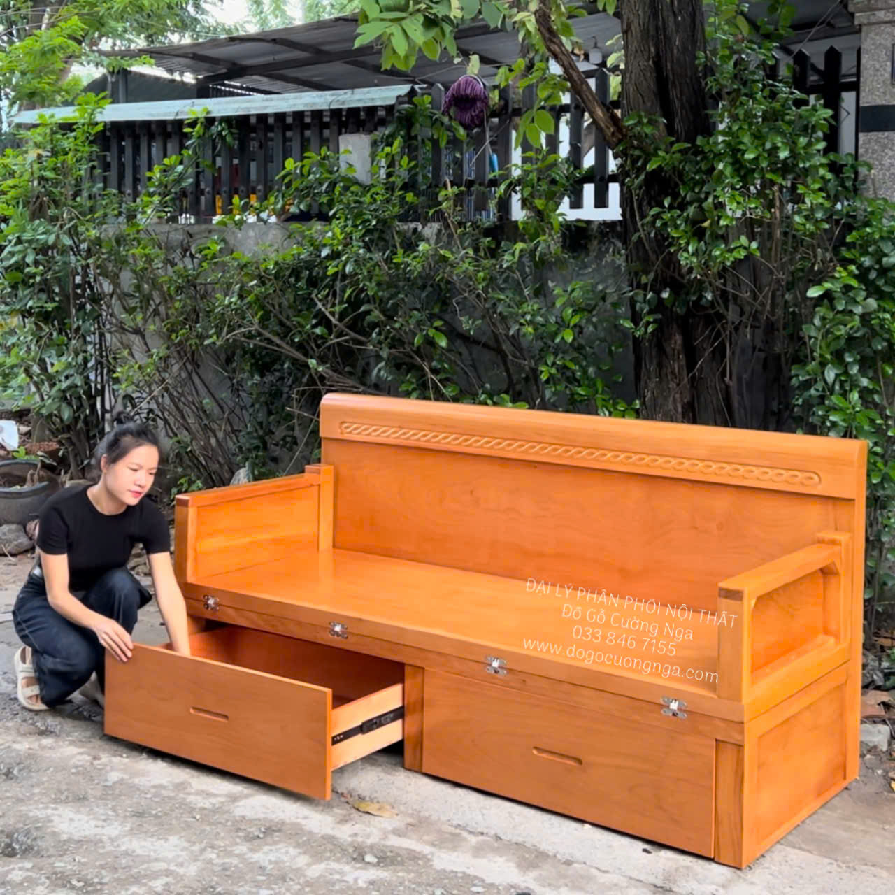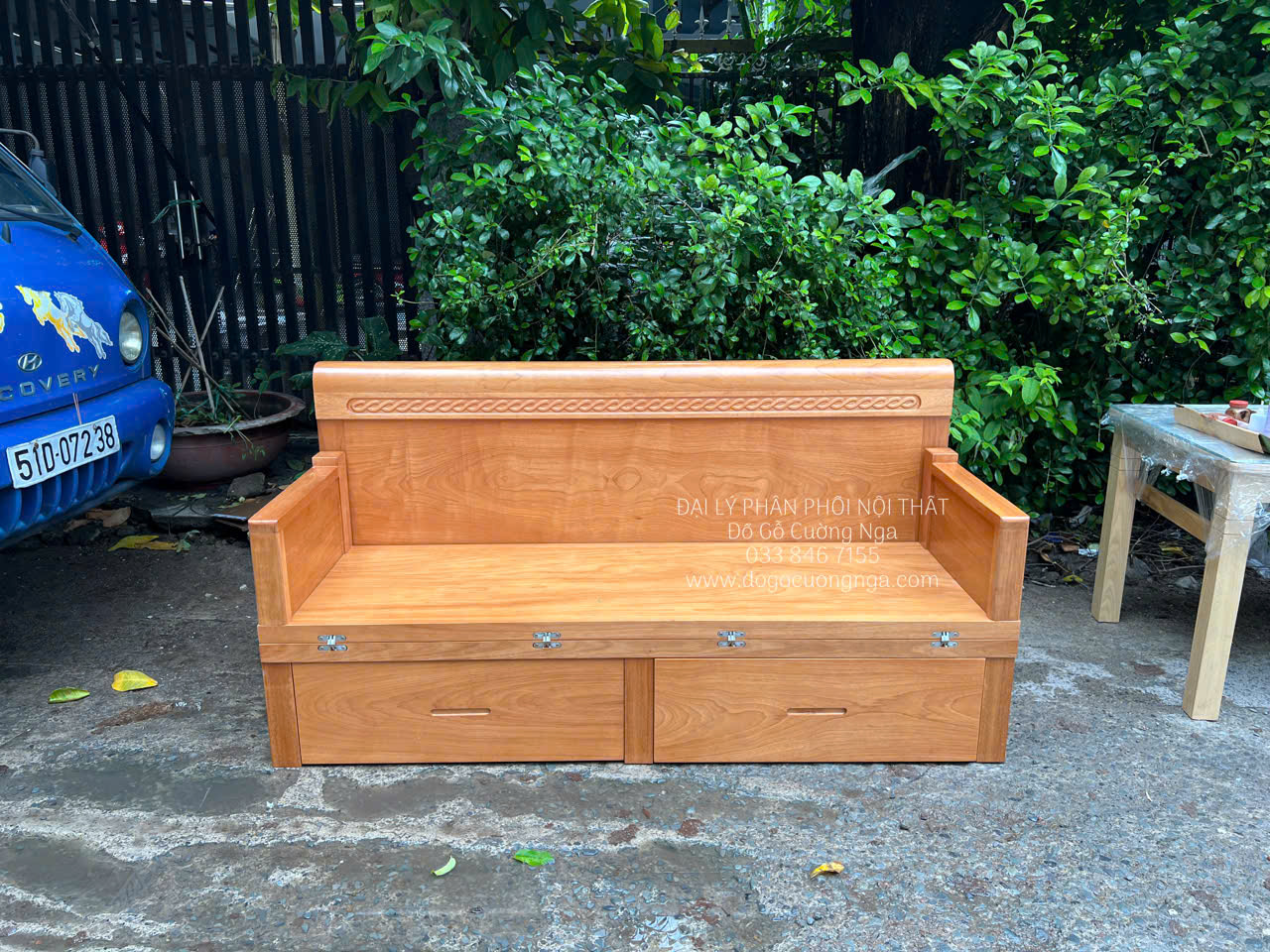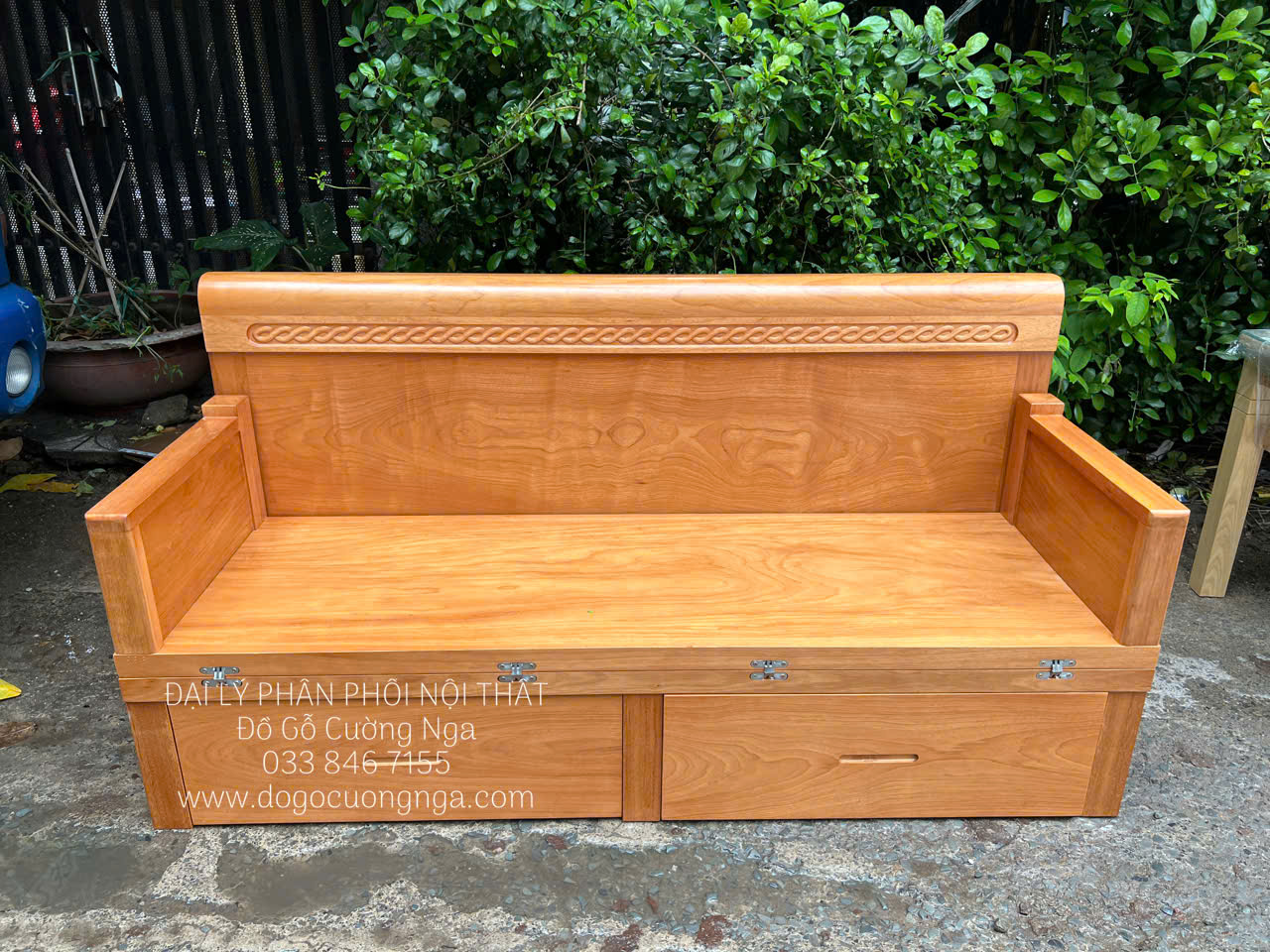 Giường gấp gỗ - ghế giường gỗ Gõ Đỏ 2 ngăn kéo hiện đại