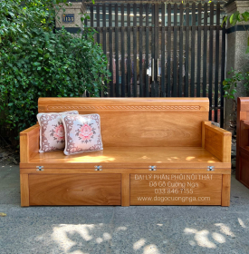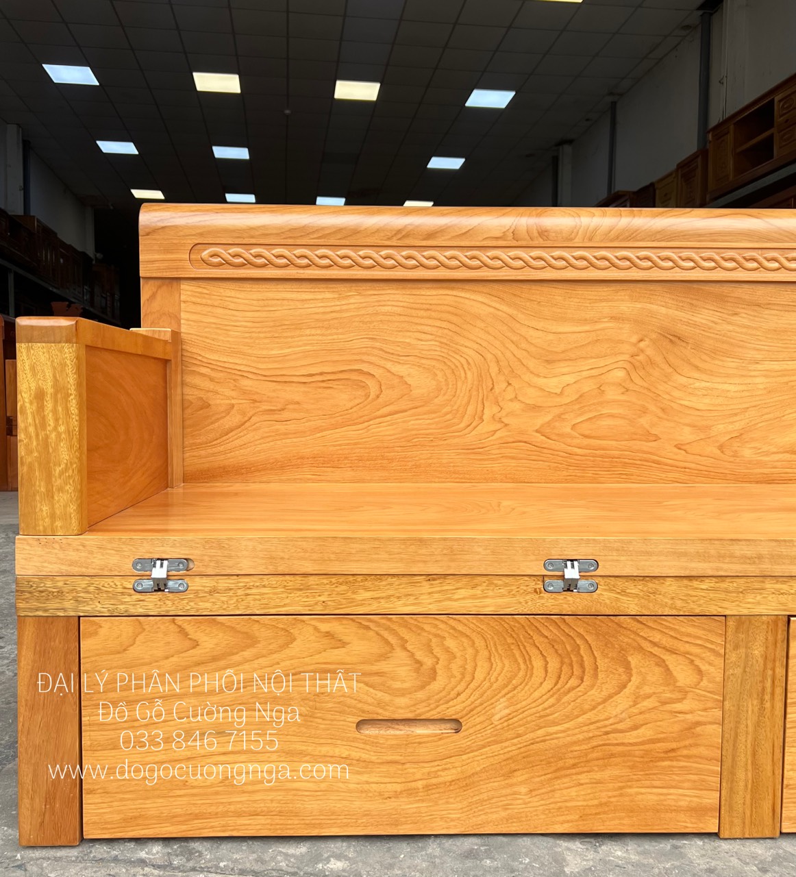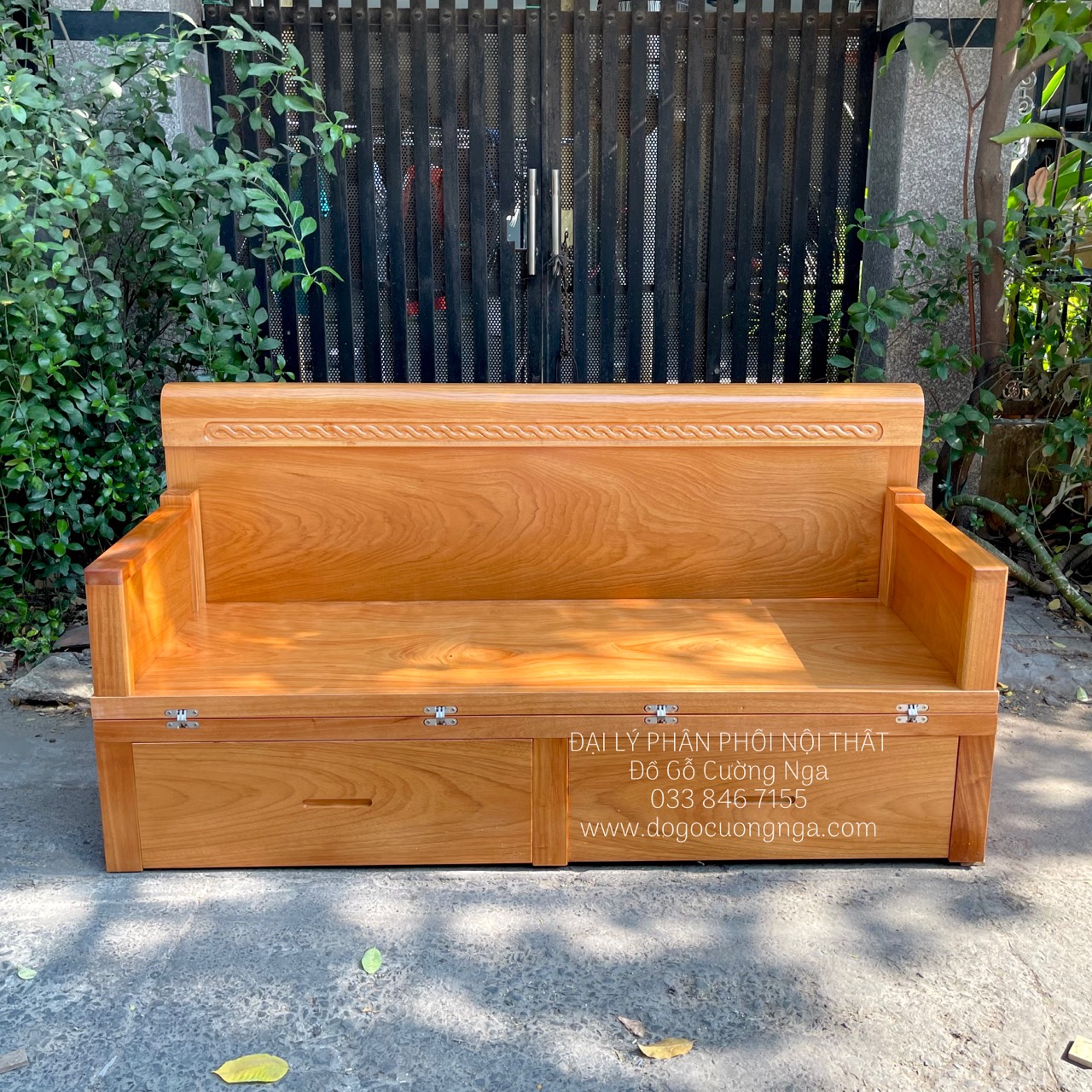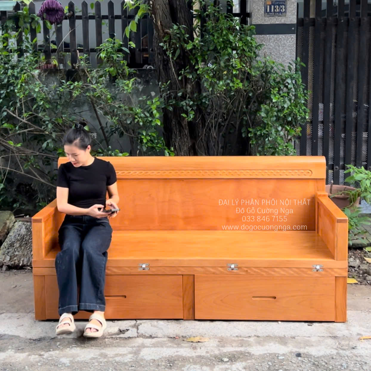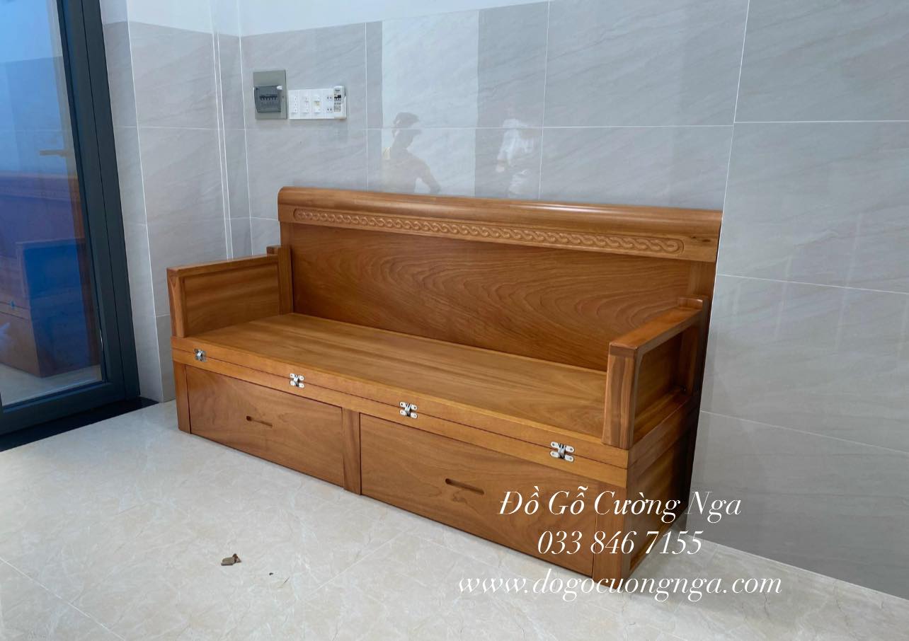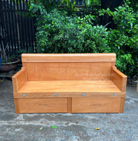Giường gấp gỗ - ghế giường gỗ Gõ Đỏ 2 ngăn kéo hiện đại