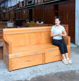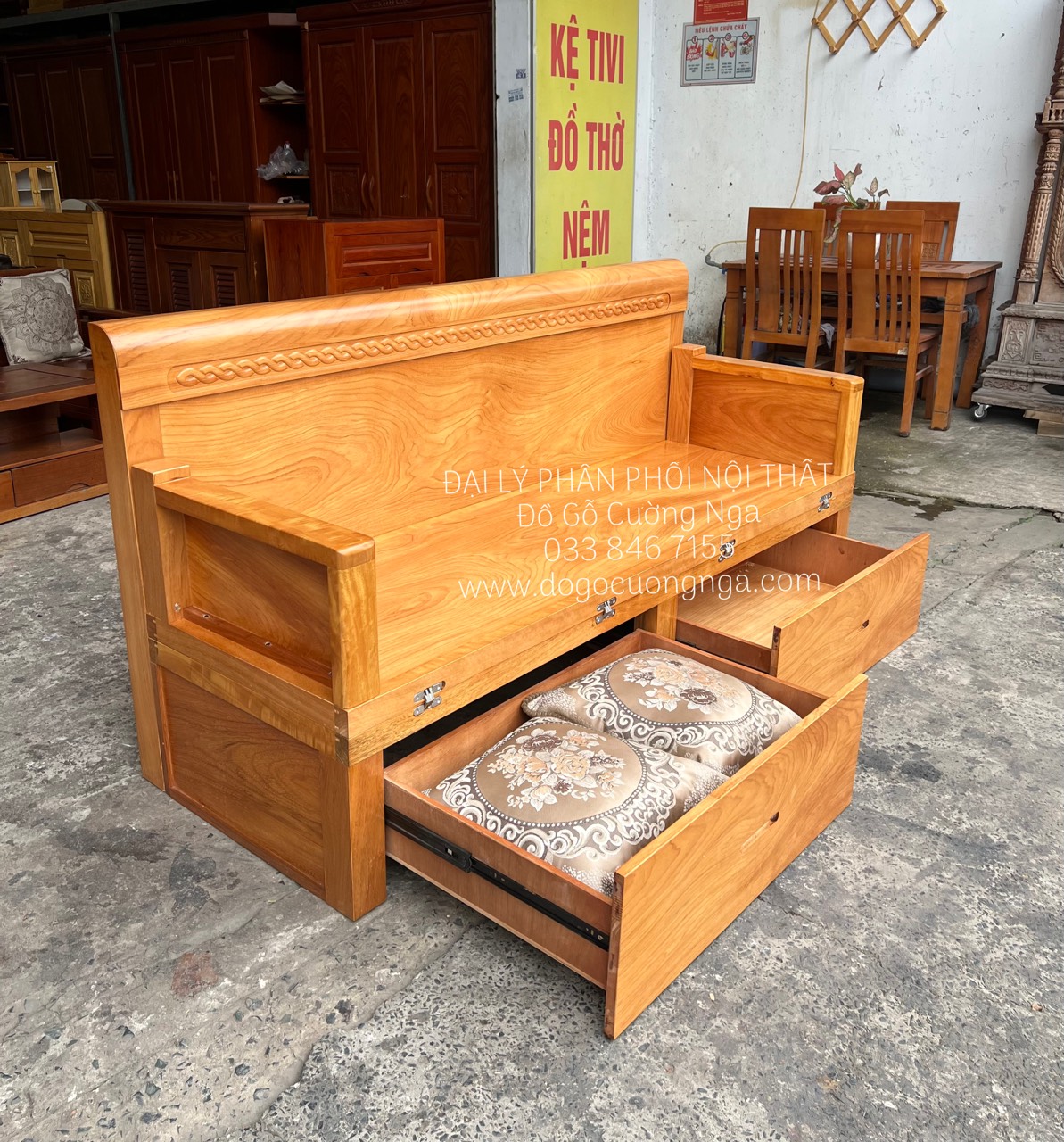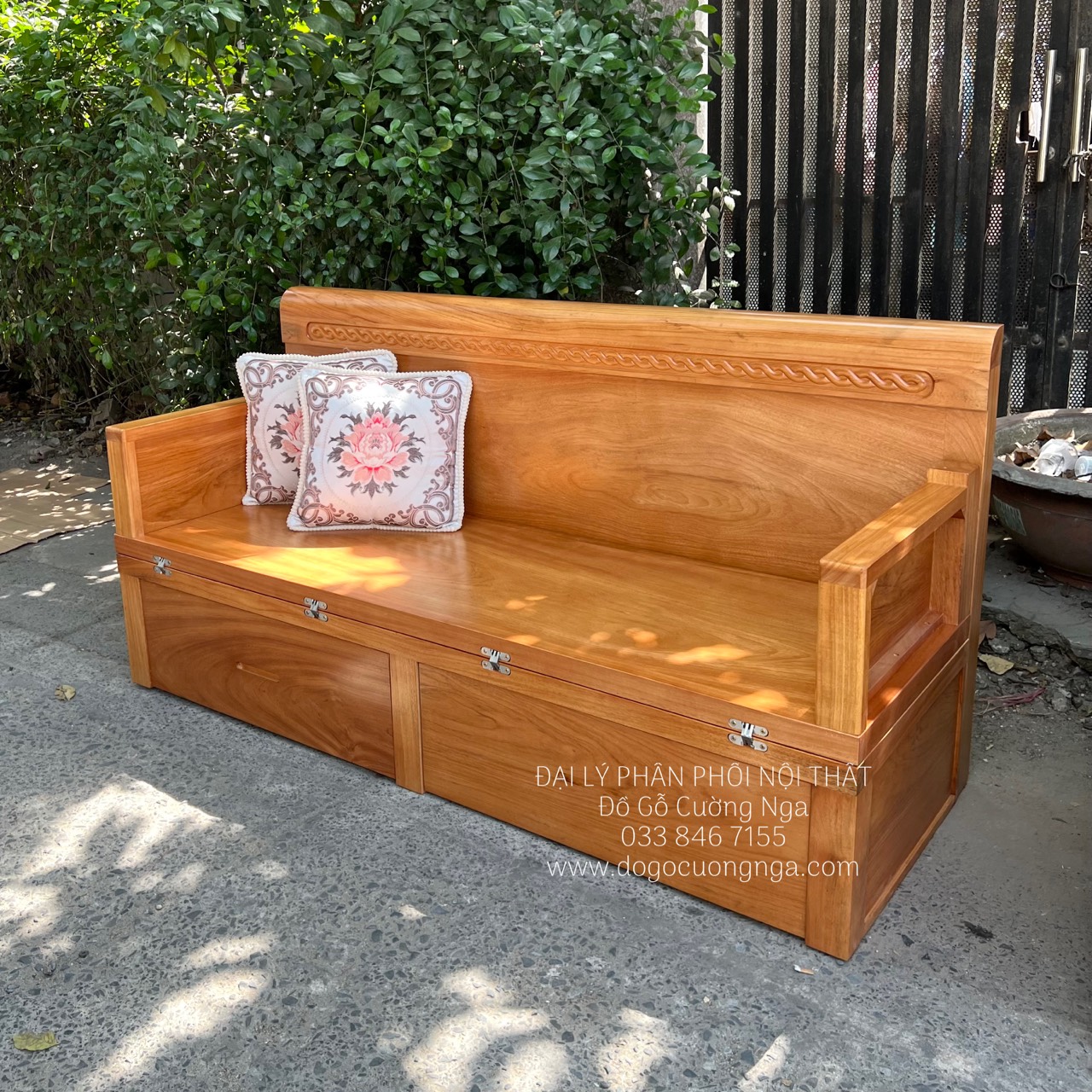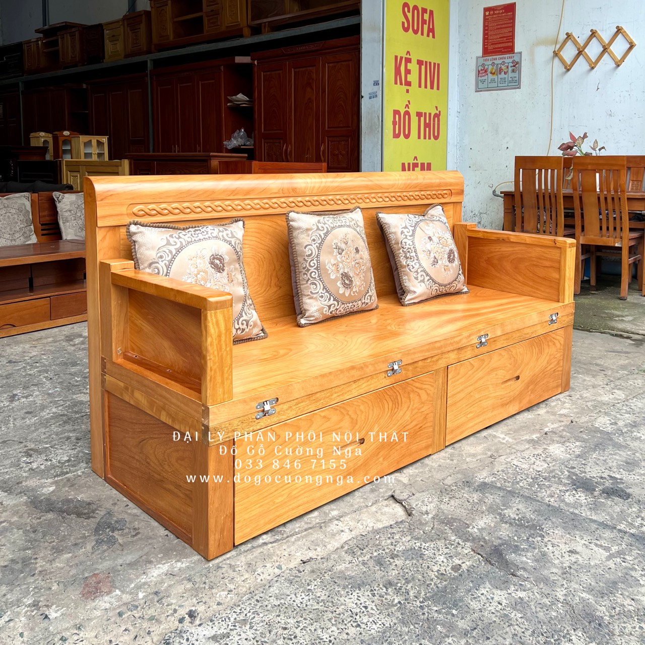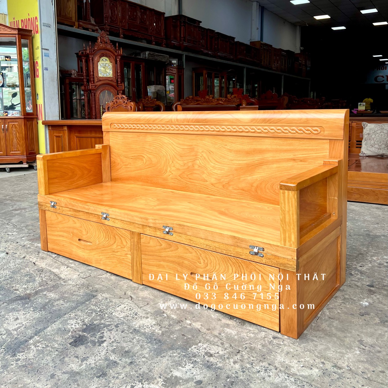 Giường gấp gỗ - ghế giường gỗ Gõ Đỏ 2 ngăn kéo hiện đại