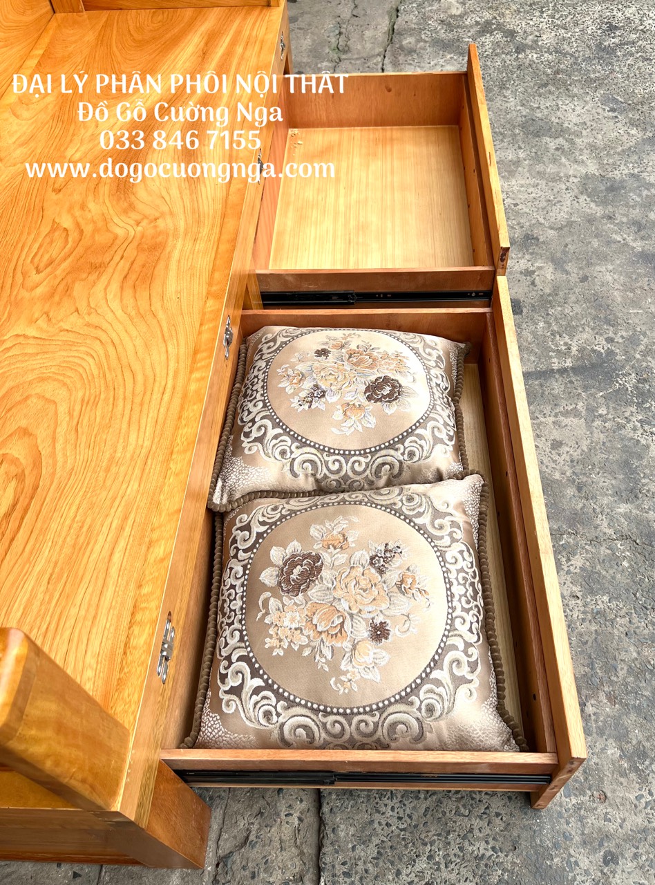 Giường Gấp Gỗ Xoan Đào 2 Ngăn Kéo Kèm Bàn (Có Kính) & Đôn Gỗ Sồi Bền Đẹp