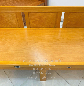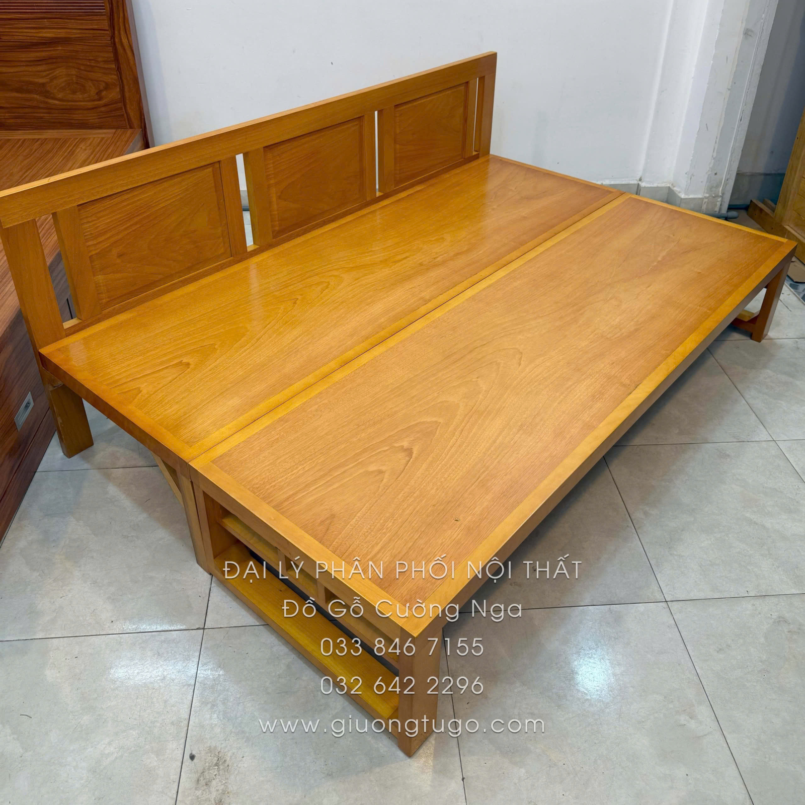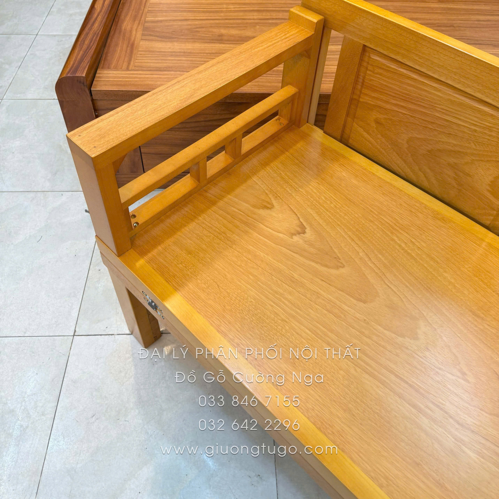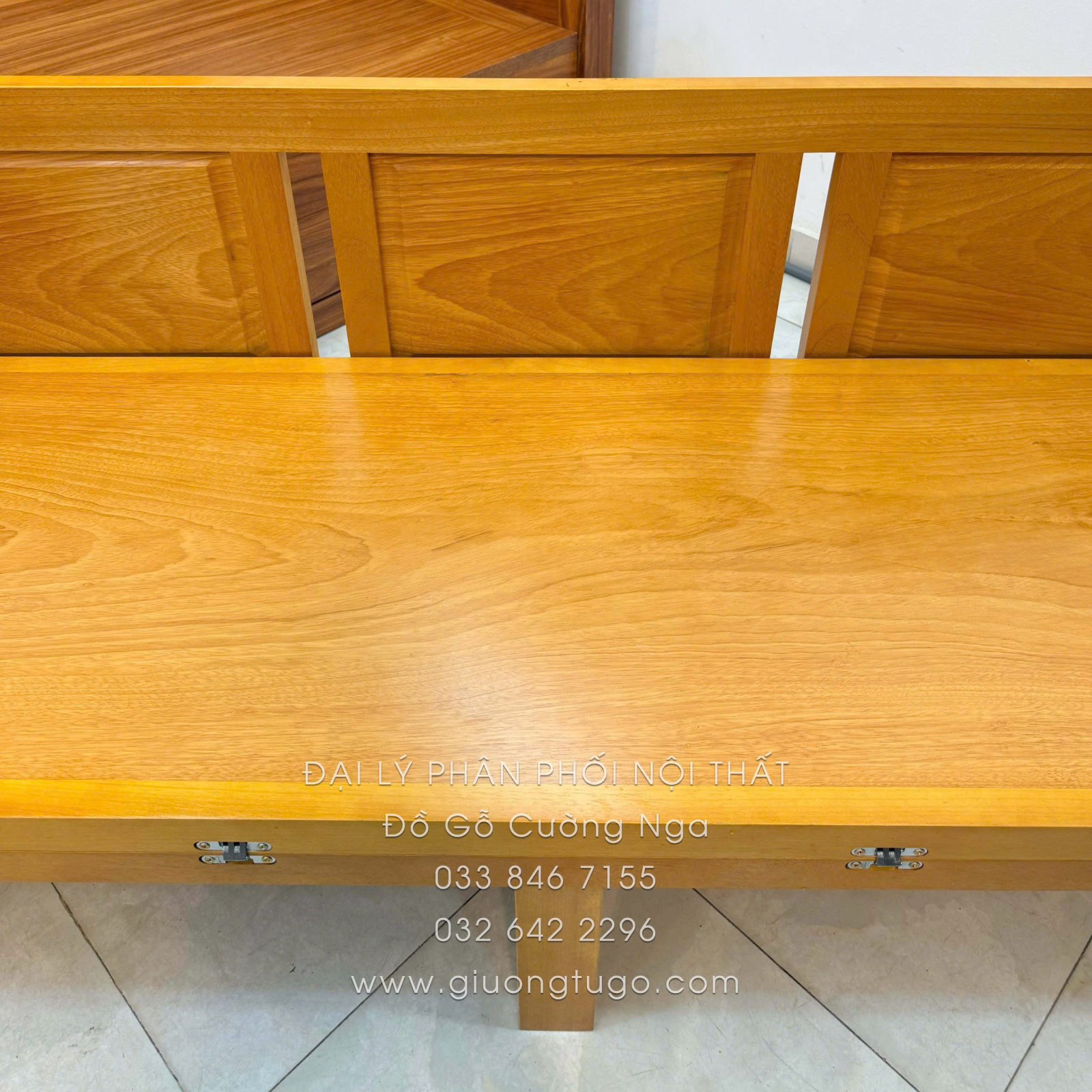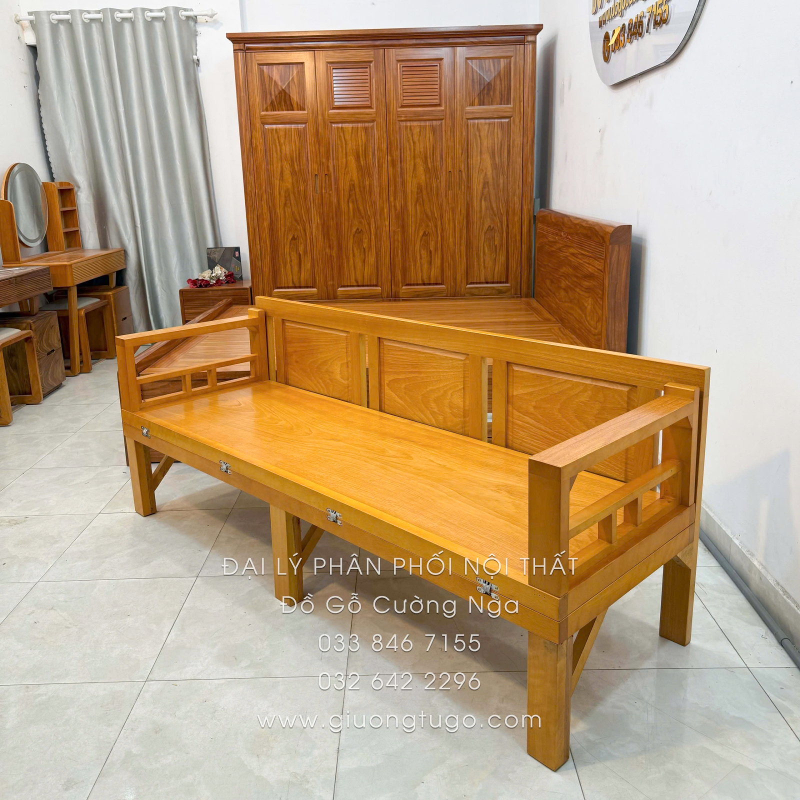Giường Gấp Gỗ Xoan Đào 2 Ngăn Kéo Kèm Bàn (Có Kính) & Đôn Gỗ Sồi Bền Đẹp