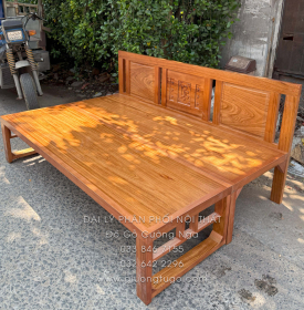Giường Gấp Gỗ Xoan Đào 2 Ngăn Kéo Kèm Bàn (Có Kính) & Đôn Gỗ Sồi Bền Đẹp