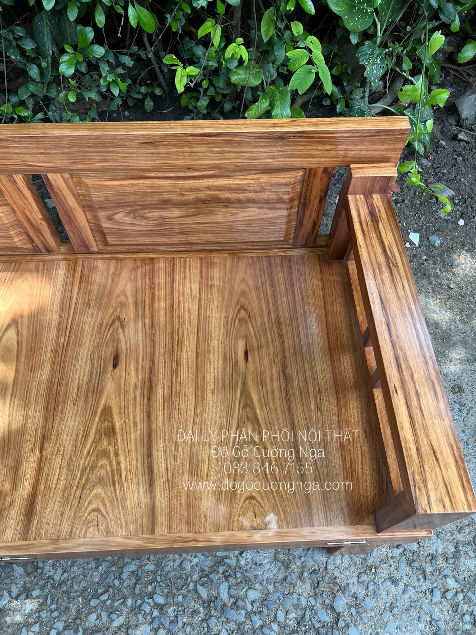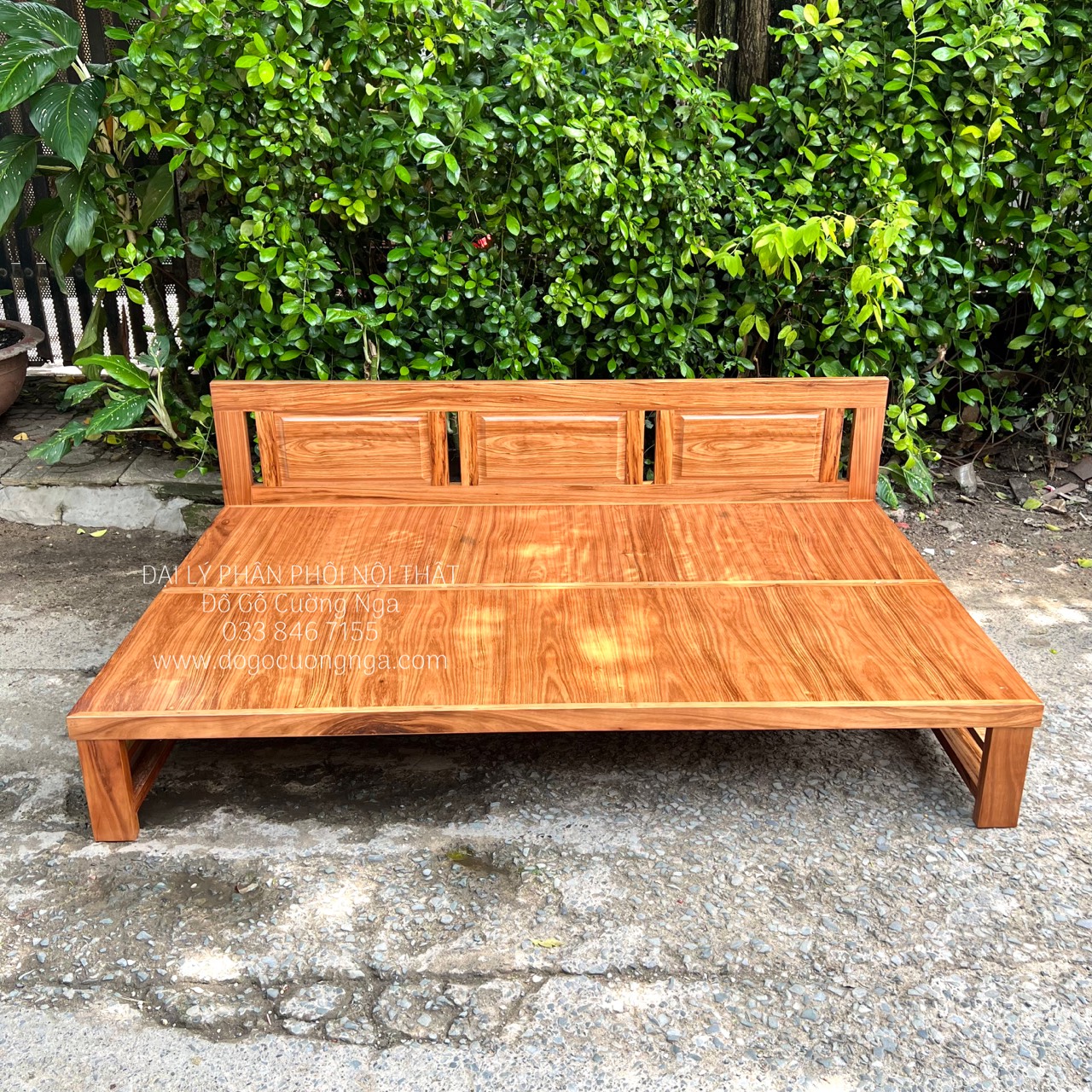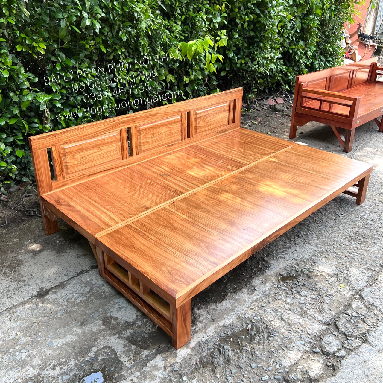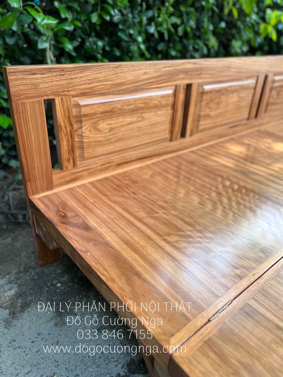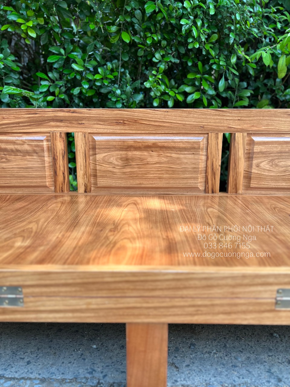 Giường Gấp Gỗ Xoan Đào 2 Ngăn Kéo Kèm Bàn (Có Kính) & Đôn Gỗ Sồi Bền Đẹp