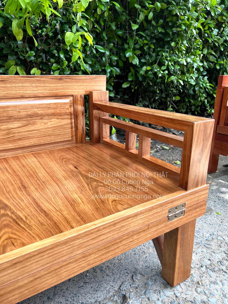 Ghế giường gấp gỗ được làm từ gỗ Hương Xám nhập khẩu với chất lượng đảm bảo các tiêu chuẩn quốc tế chắc chắn, chịu lực tốt và chống cong vênh, chống mối mọt hiệu quả.