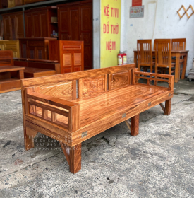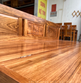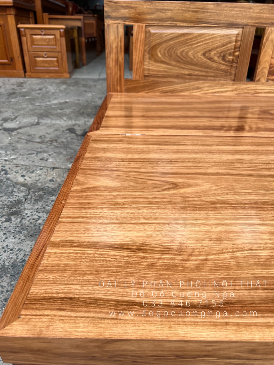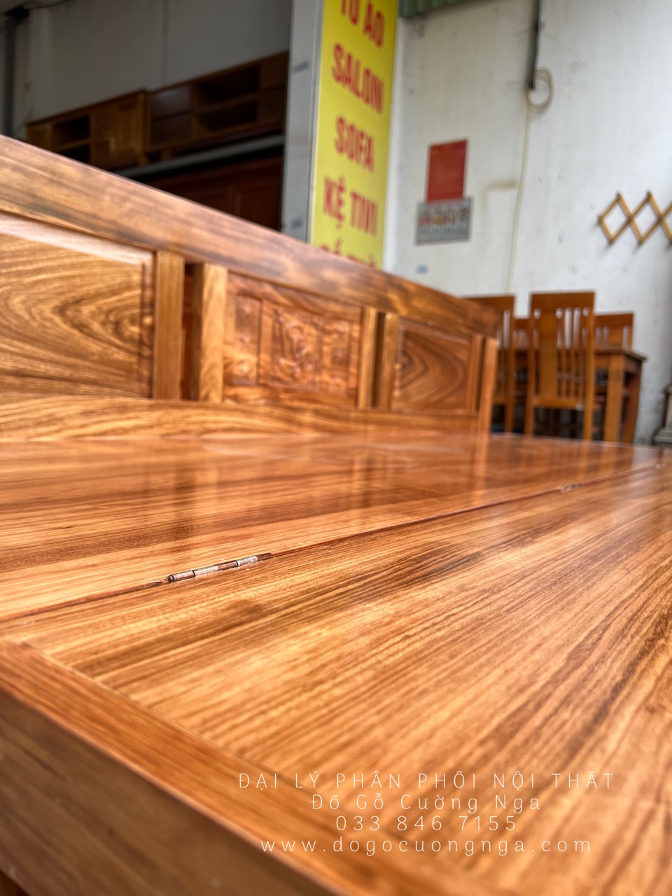 Giường Gấp Gỗ Xoan Đào 2 Ngăn Kéo Kèm Bàn (Có Kính) & Đôn Gỗ Sồi Bền Đẹp