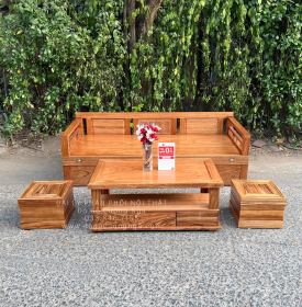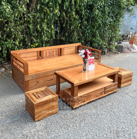 Kích thước giường ghế gỗ hương xám + bàn trà 4 món