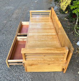 Giường Gấp Gỗ Sồi 2 Ngăn Kéo 1m4x1m9 Màu Tự Nhiên Giá Rẻ