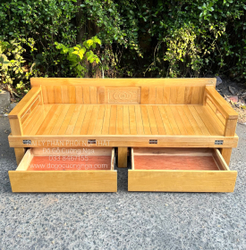 Ghế mở thành giường gỗ sồi - 2 ngăn kéo