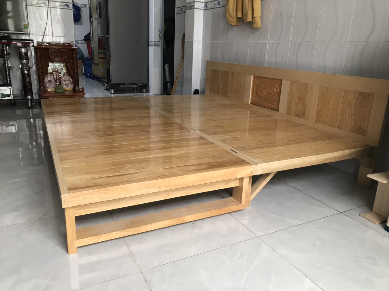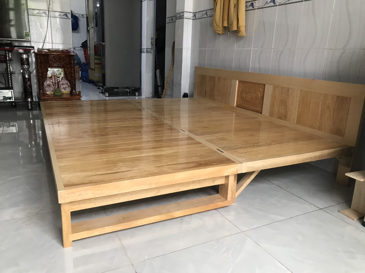 Video thực tế mẫu giường gấp 2 ngăn kéo gỗ sồi