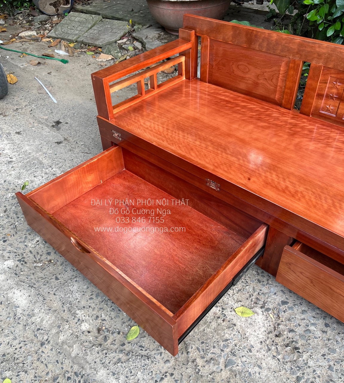 Chất liệu : Gỗ XOAN ĐÀO - ray ô kéo trượt bi