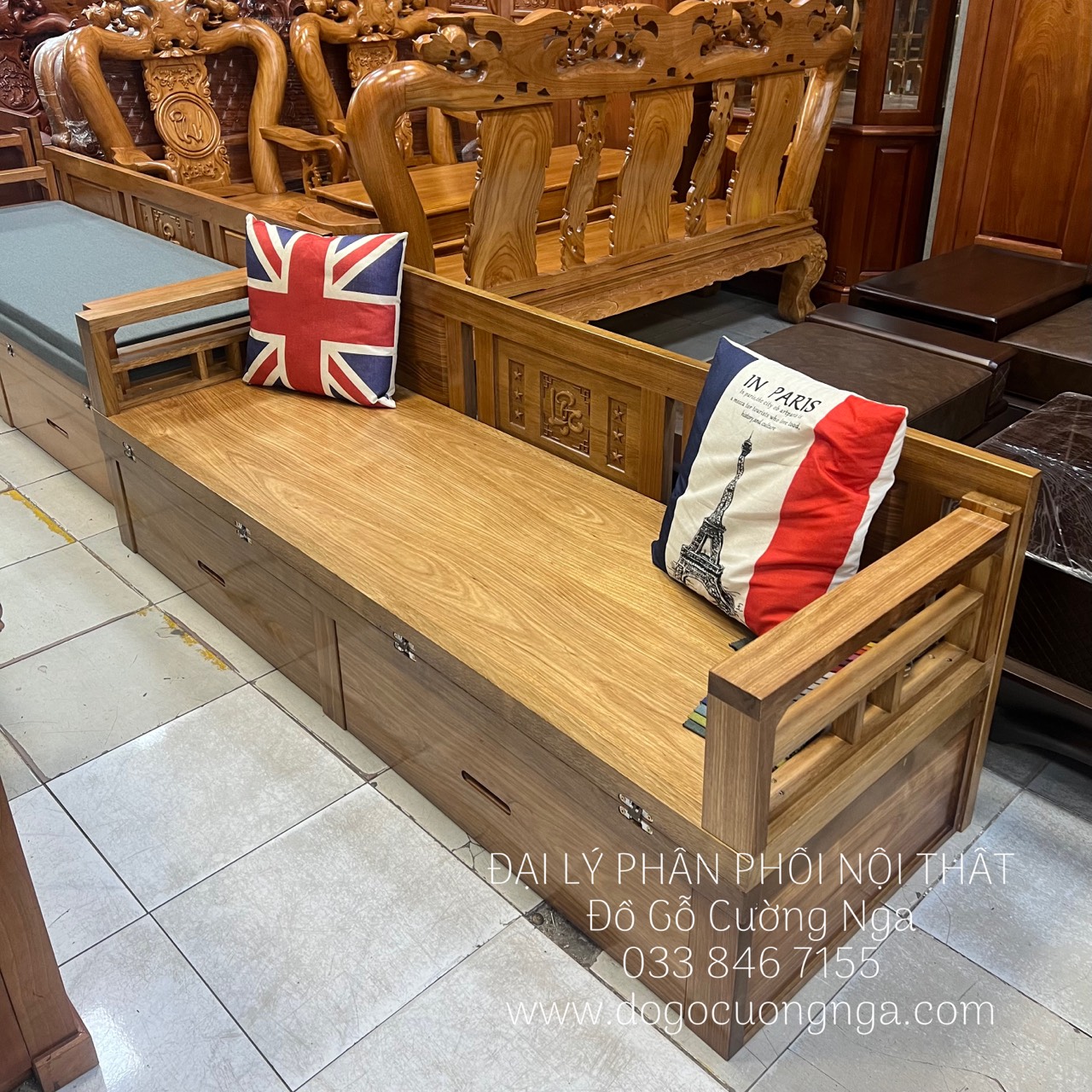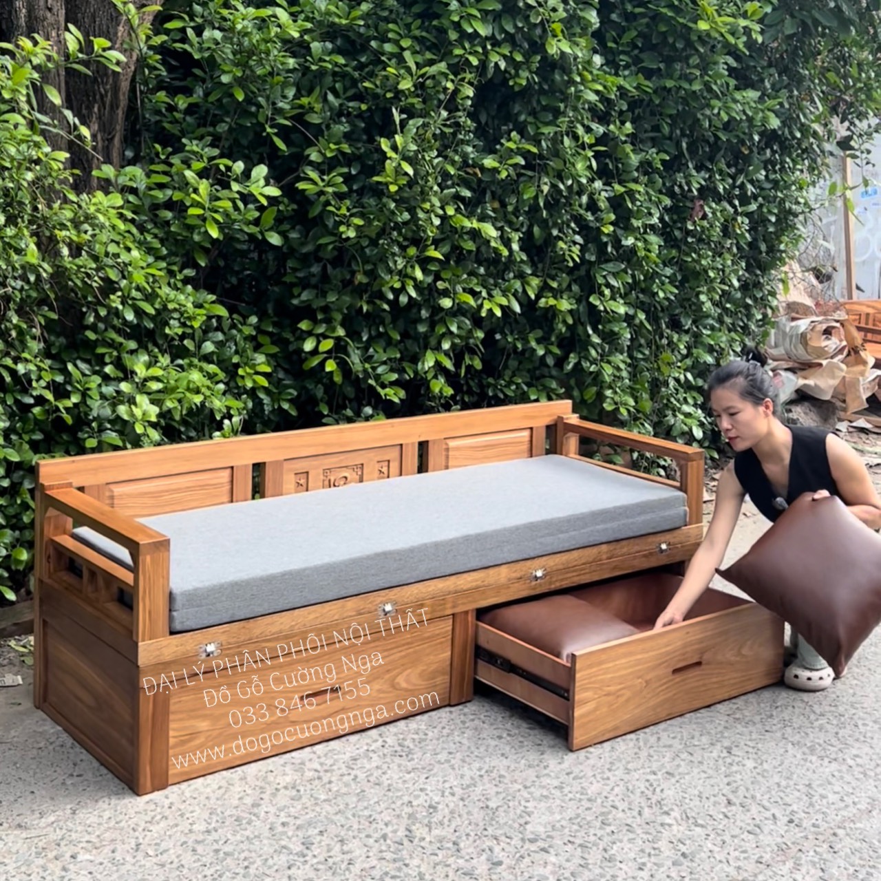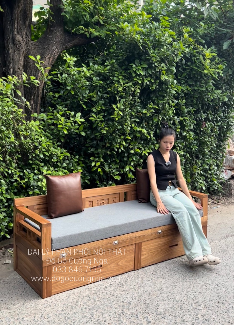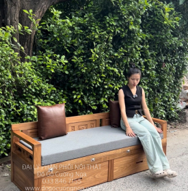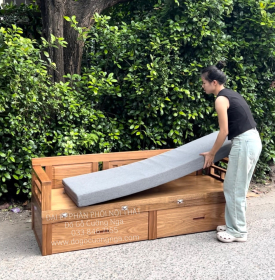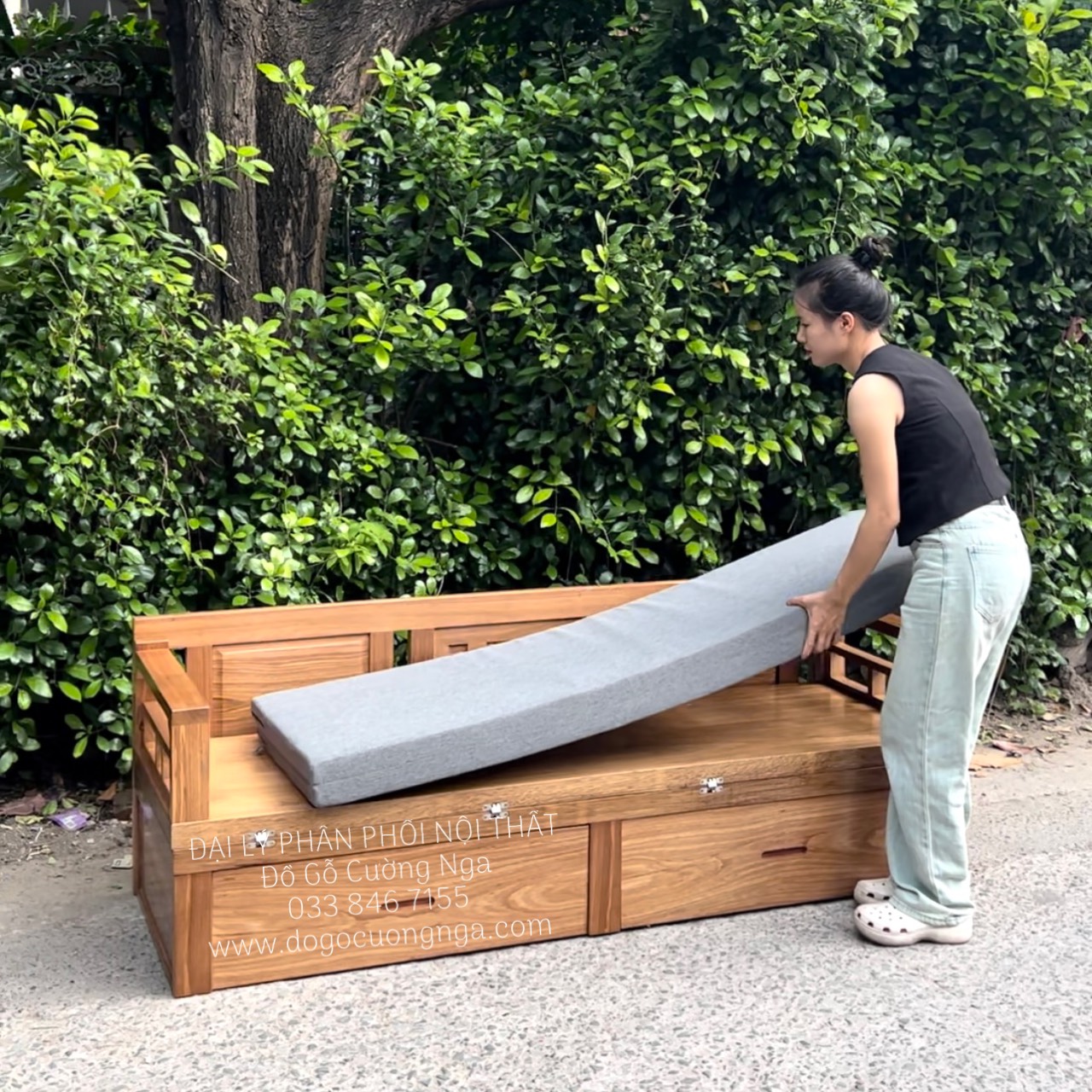 Giường Gấp Gọn Gỗ Hương Xám 2 Ngăn Kéo Kèm Nệm Ngồi Hiện Đại
