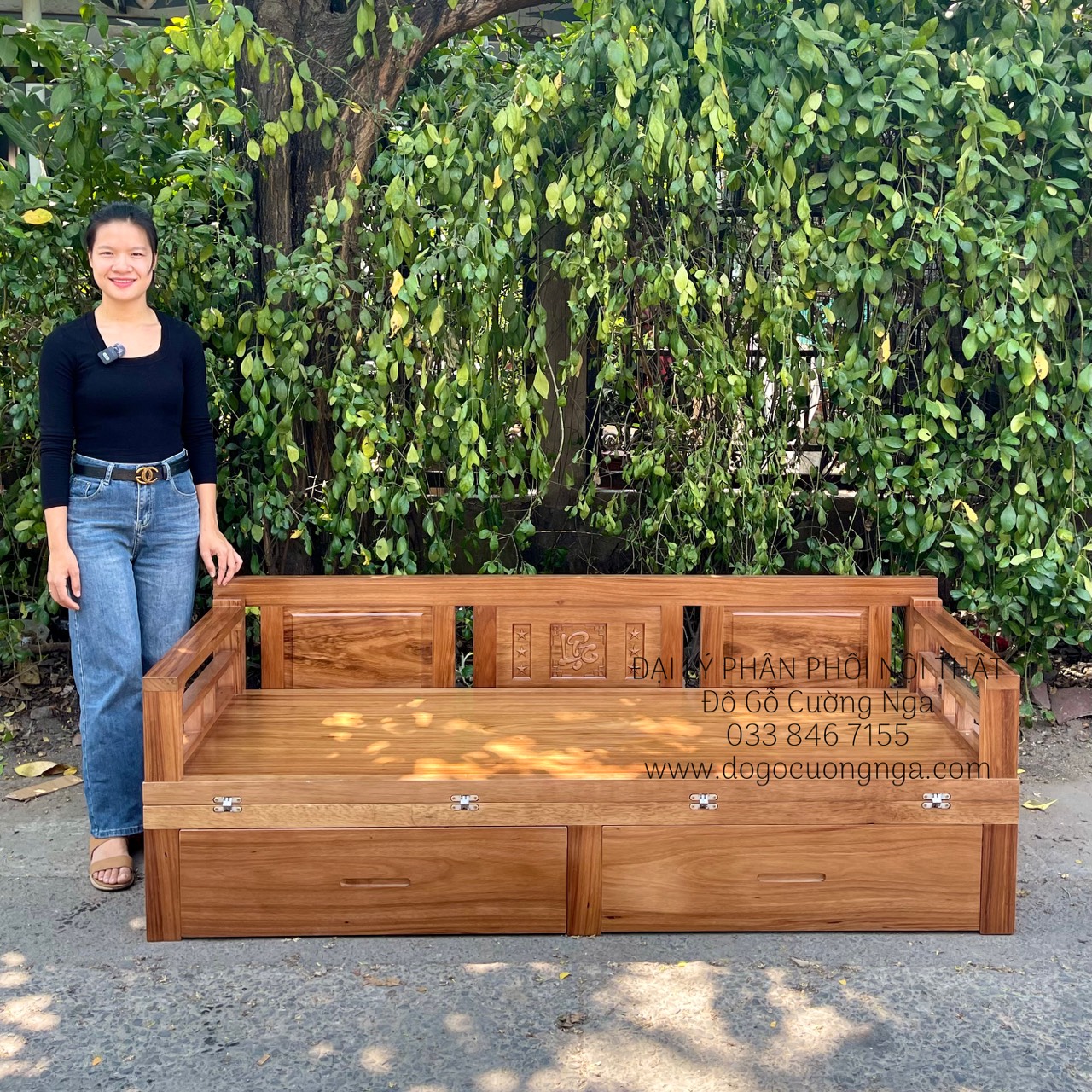 Thông tin chi tiết giường gấp gỗ hương xám 2 ngăn kéo