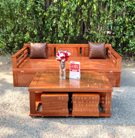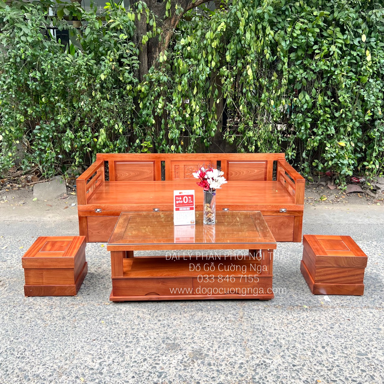 Giường Gấp Gọn Gỗ Xoan Đào Kèm Bàn Trà Sofa Và Đôn Ngồi