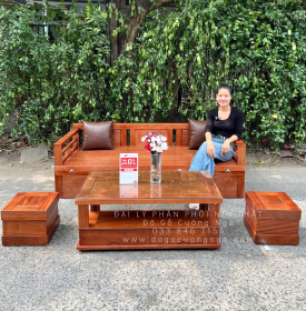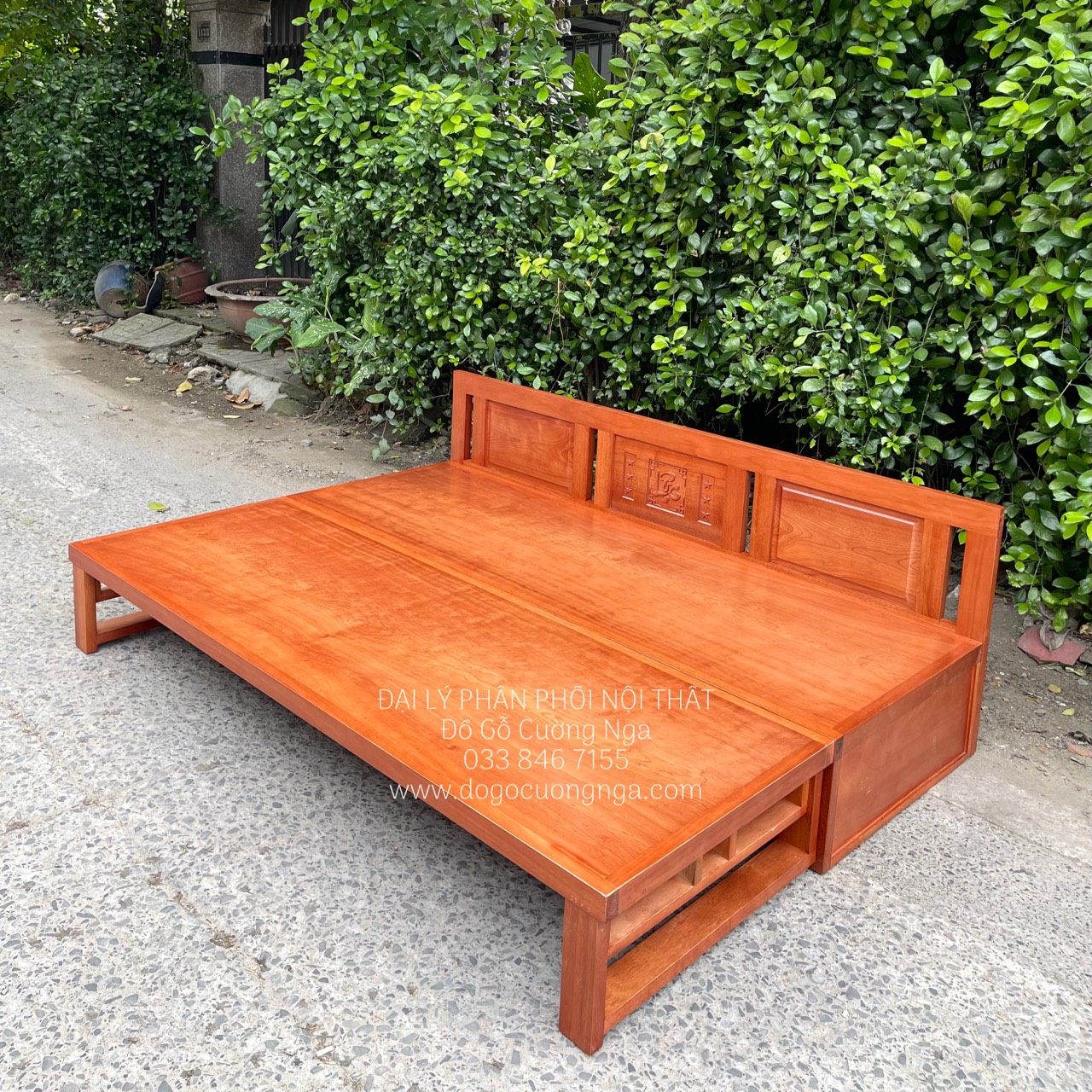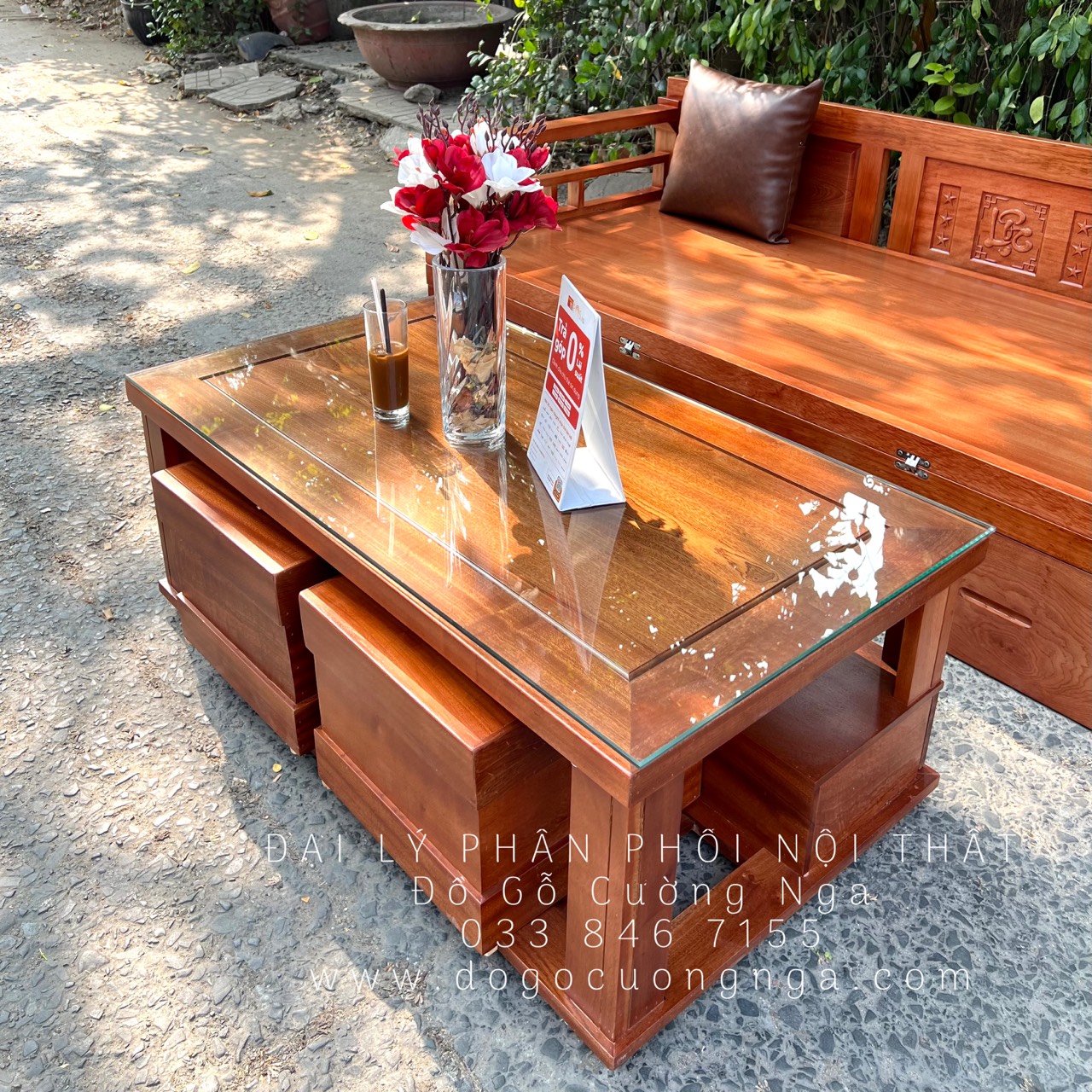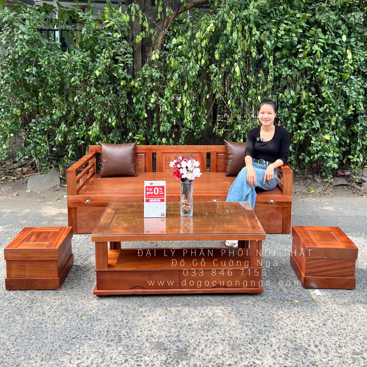 Kích thước giường ghế gỗ xoan đào + bàn trà gỗ 4 món