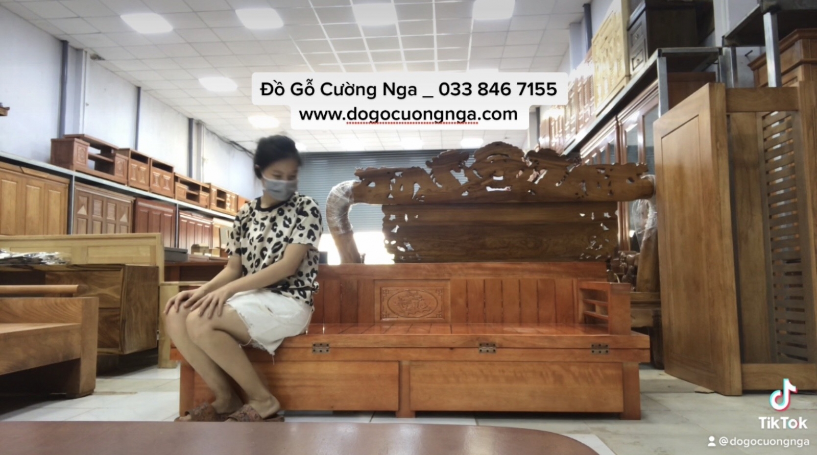 Ghế giường được trang trí với họa tiết hoa lá nhỏ, sản phẩm thêm phần đẹp mắt và tăng thêm tính sang trọng, thẩm mỹ cho không gian phòng ở. Đồ gỗ, nhất là trường kỷ, được coi như là vật phẩm phong thủy cho mỗi gia đình. Giúp hút sinh khí, mang lại may mắn, sức khỏe cho cả gia đình.