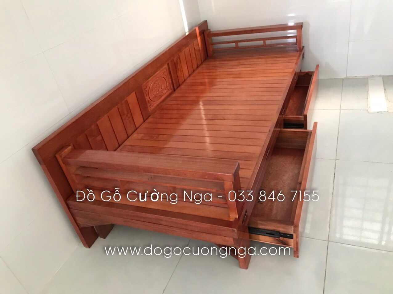 Giường gấp gỗ sồi 2 ngăn kéo đủ kích thước