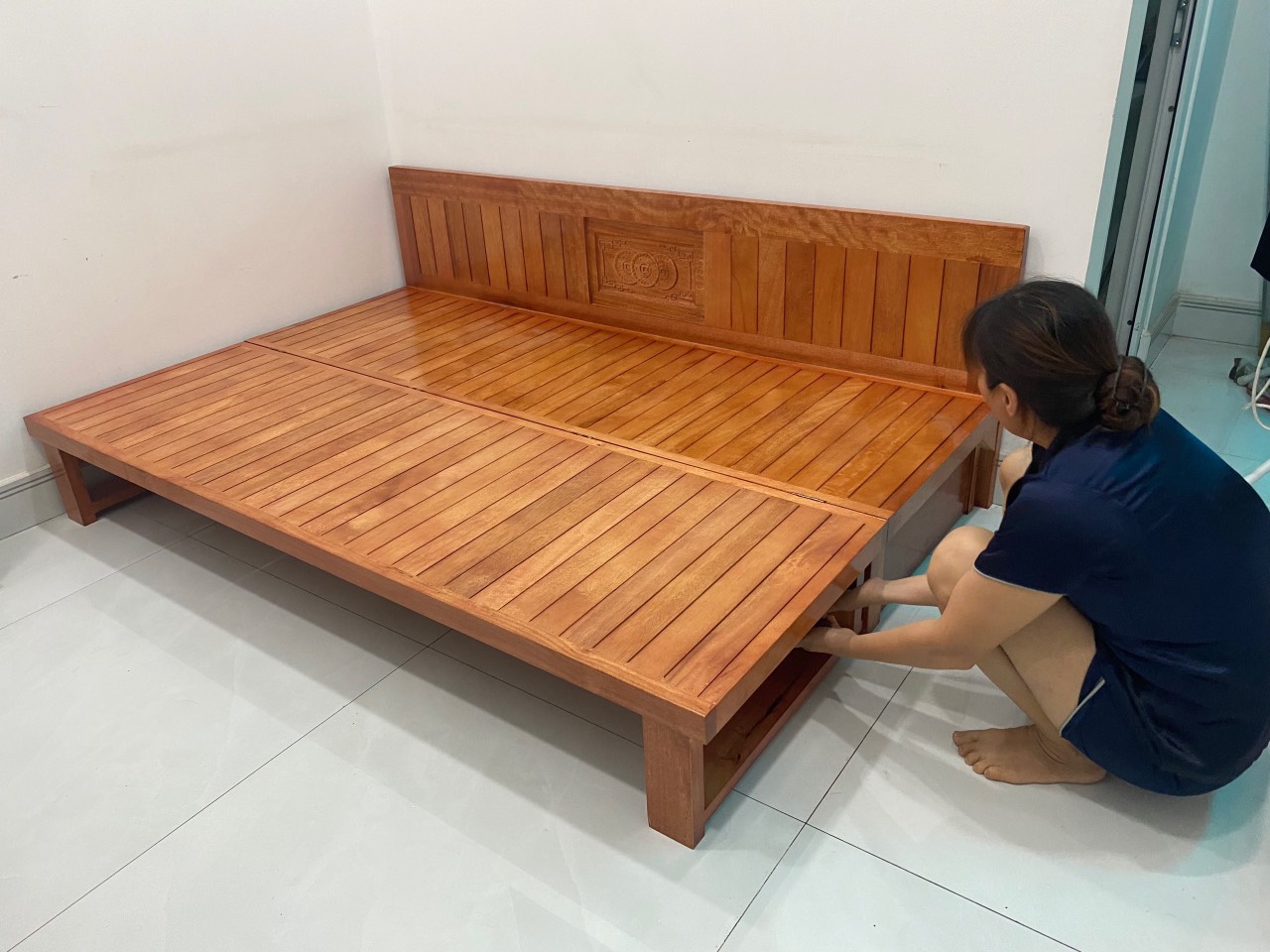 Video thực tế mẫu giường gấp 2 ngăn kéo gỗ sồi