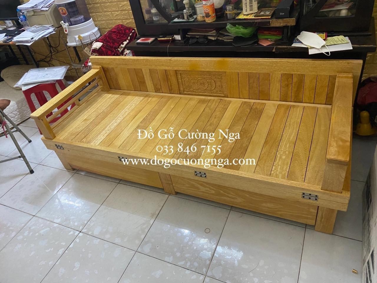 Chi tiết giường gấp - ghế giường 2 ngăn kéo gỗ sồi