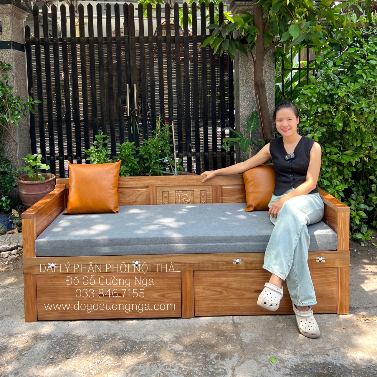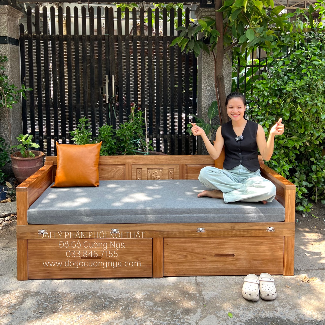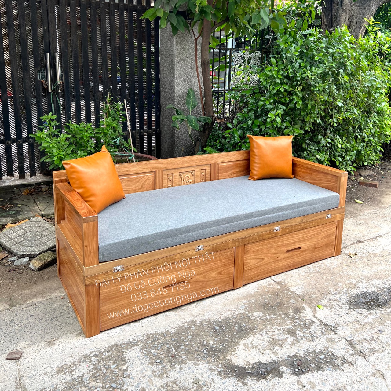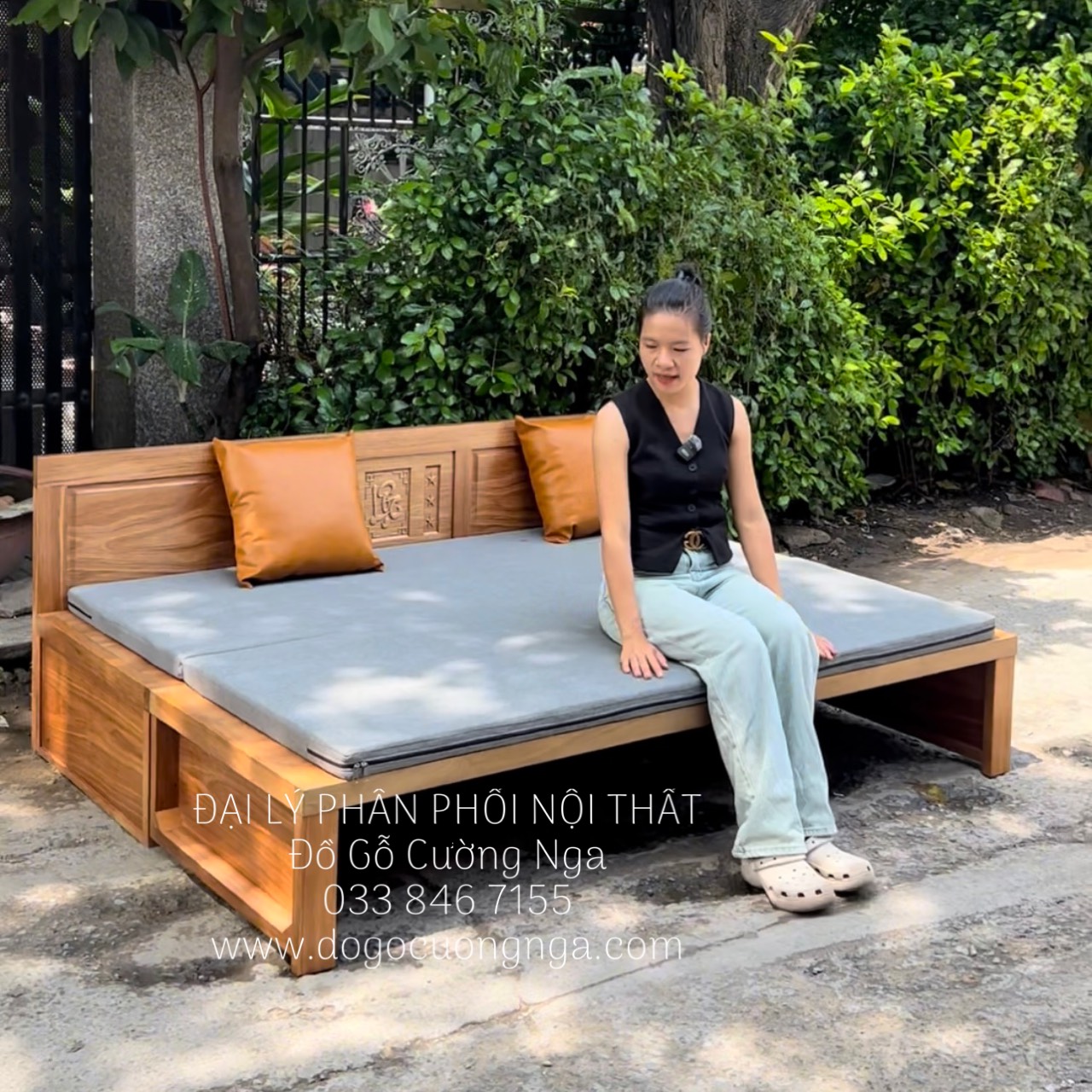 Giường Gấp Thông Minh Gỗ Hương Xám Kết Hợp Nệm Sofa Tiện Nghi