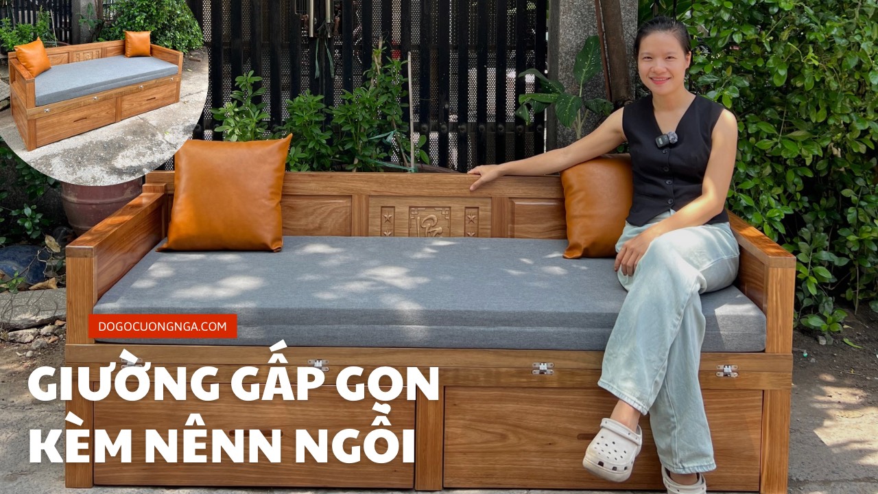 Video chi tiết ghế giường gấp gọn gỗ hương xám