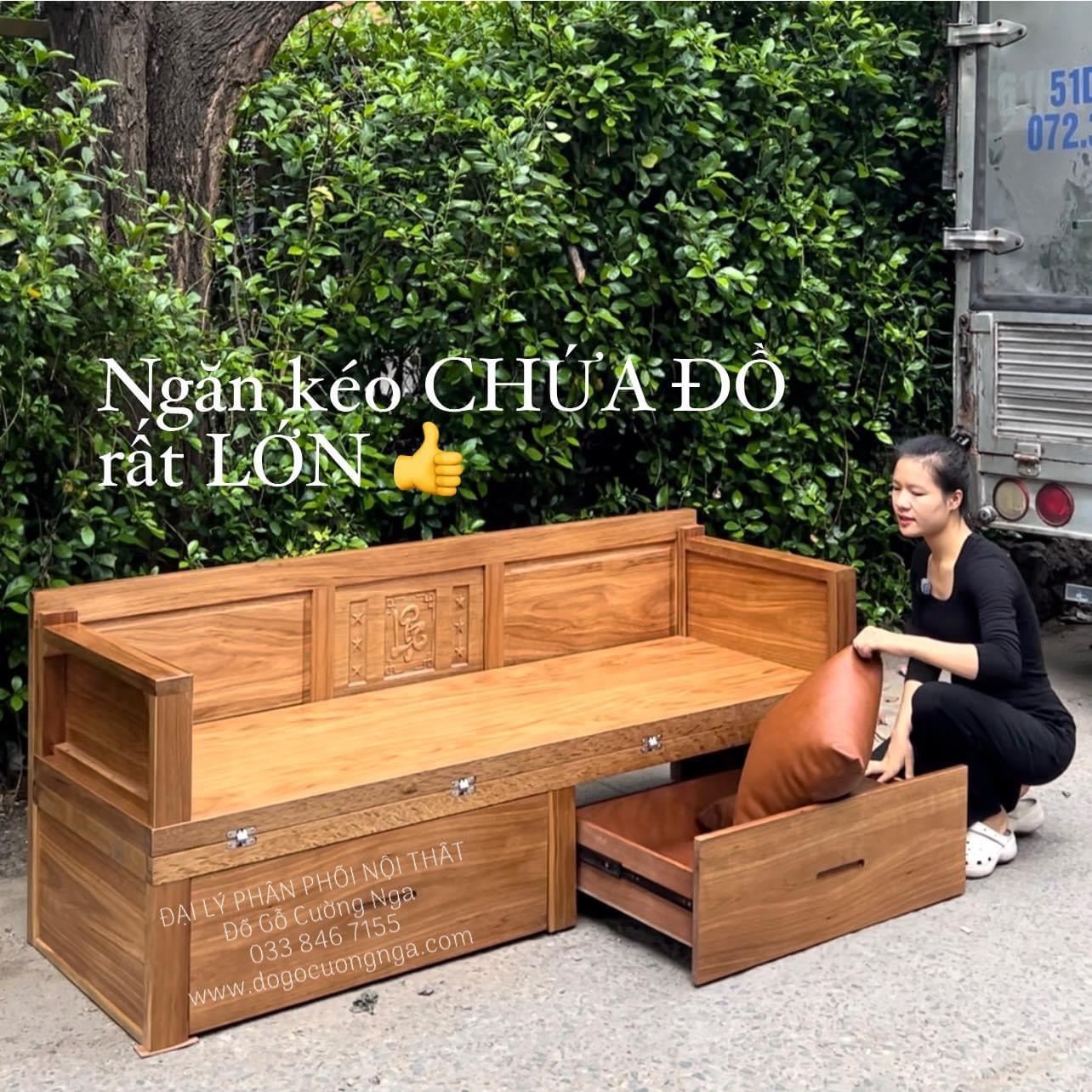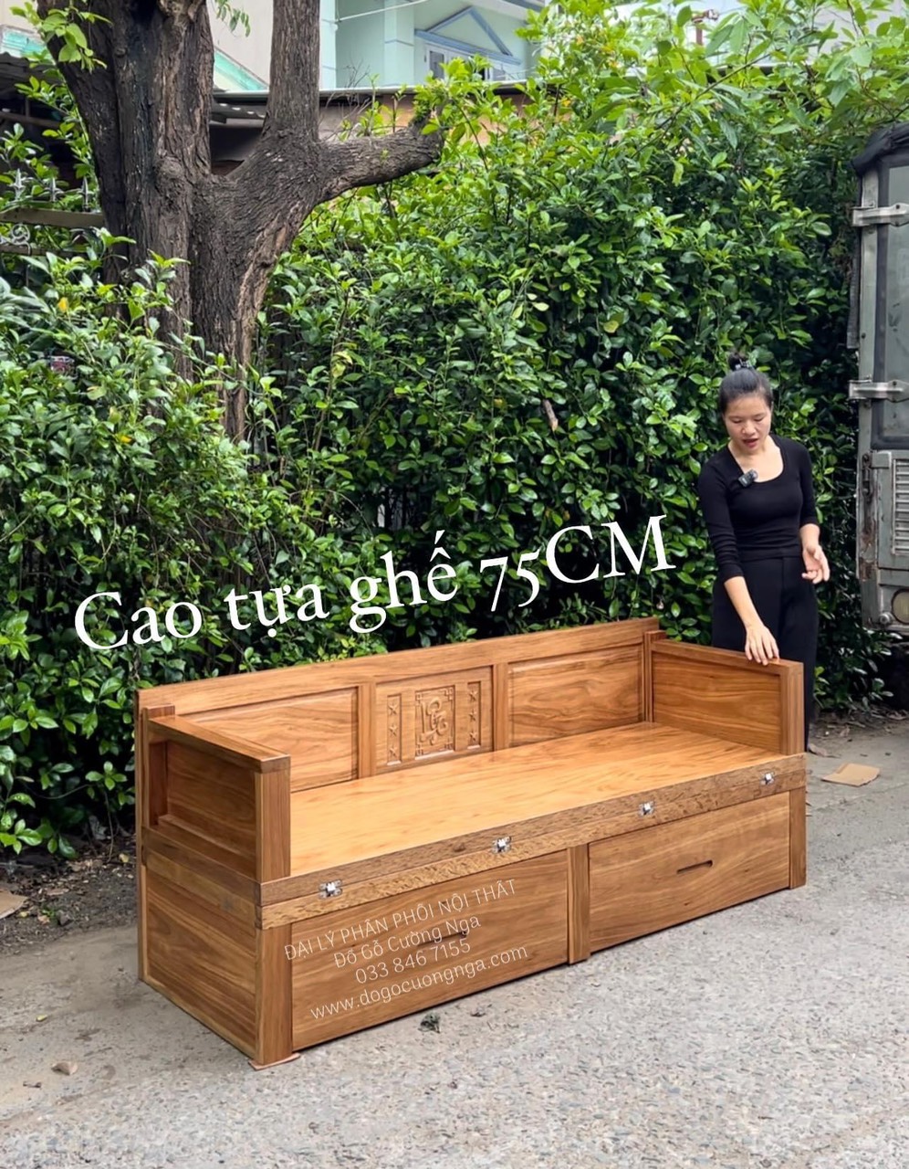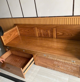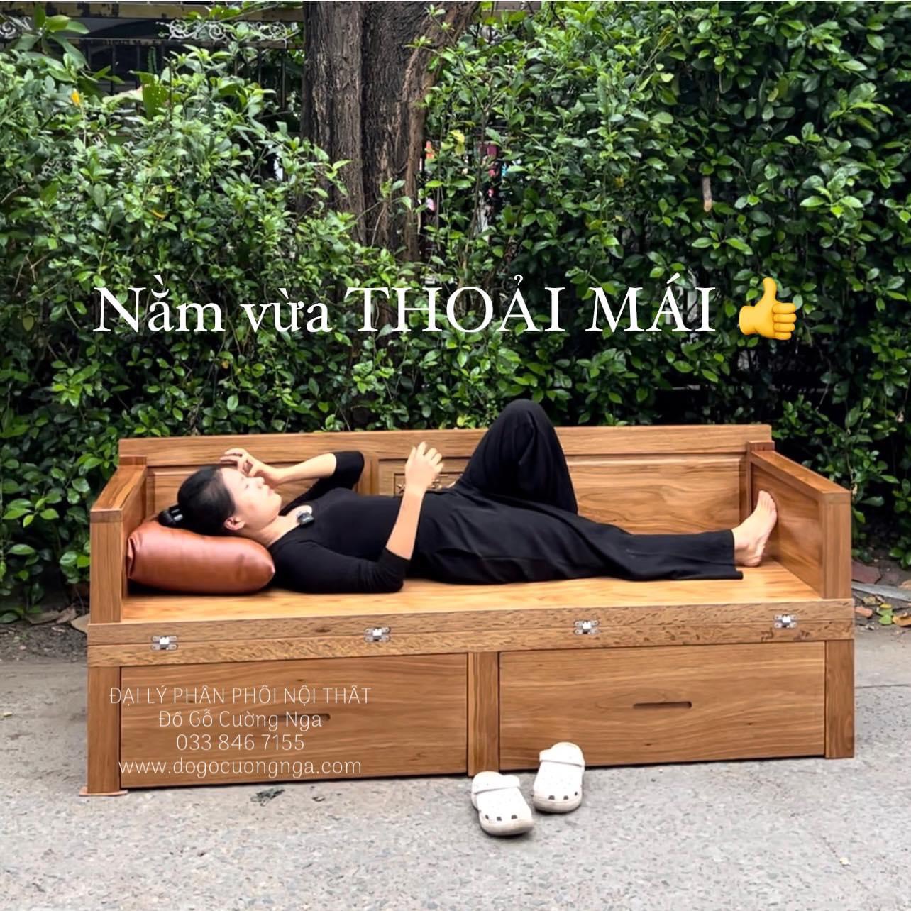 Giường ghế gỗ 2 ngăn kéo được thiết kế với kiểu dáng đơn giản. Gia chủ có thể chiêm ngưỡng được những đường nét vân gỗ tự nhiên hài hòa lẫn nhau tạo nên một nét đẹp vốn có của chiếc giường gấp gỗ tự nhiên này.