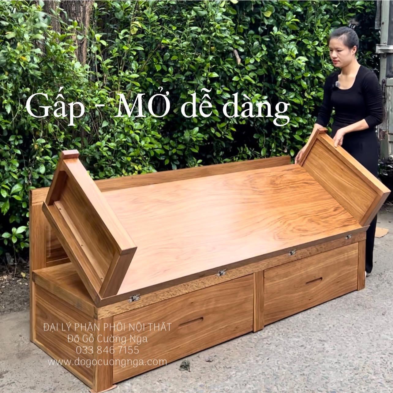 Giường Gấp Thông Minh Gỗ Hương Xám Ngăn Kéo