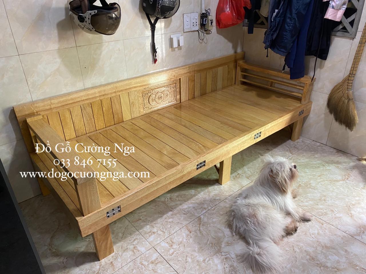 Ghế gấp thành giường gỗ sồi 1m2x1m9 màu tự nhiên thích hợp để ở phòng khách và làm ghế giường tiếp khách ,buổi tối có thể mở ra thành giường để ăn cơm ,xem tivi thích hợp cho nhà trật .