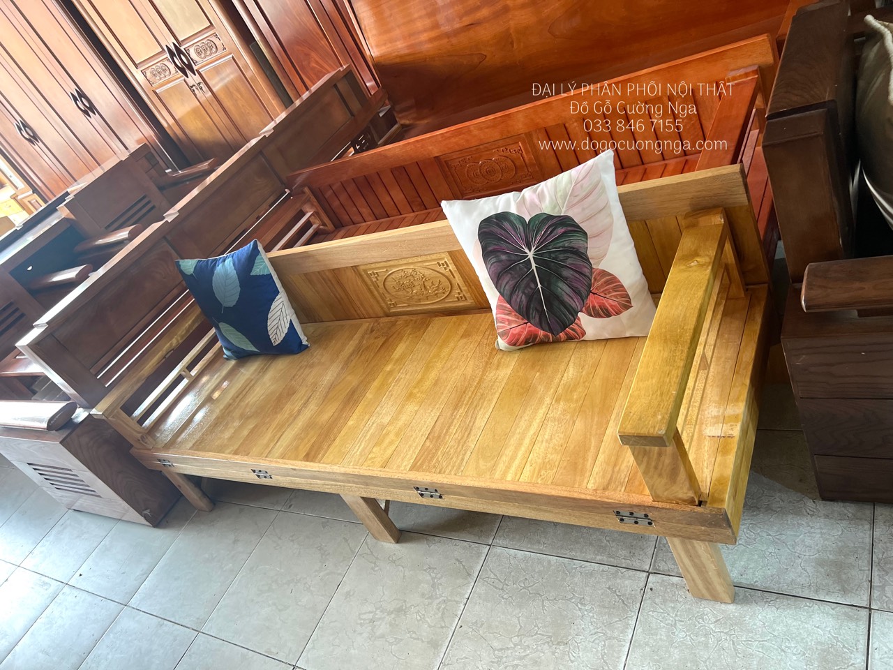 Mẫu ghế này thích hợp dùng cho phụ nữ, trẻ nhỏ và người già lớn tuổi ,ghế không phải là một miếng gỗ nguyên mà là các thanh ghế song song với nhau công dụng chính của ghế cũng là để tiếp khách và làm giường ngủ .. Nhược điểm khi dùng ghế đó là khi làm giường phải dùng nệm để nằm .