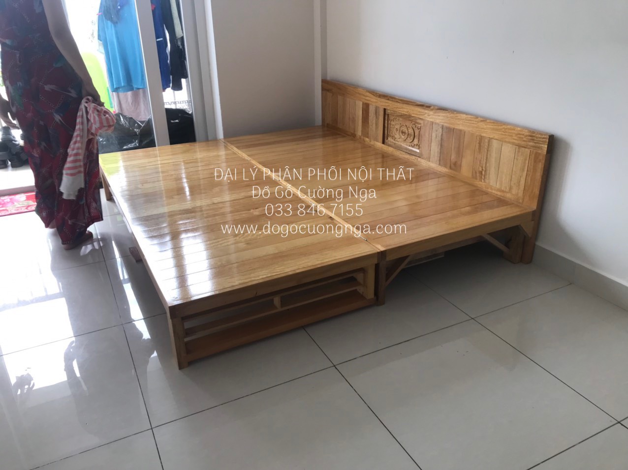 Giường Ghế Gấp Gỗ Sồi Giá Rẻ 1m2x1m9 Màu Tự Nhiên