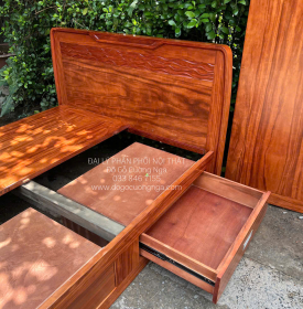 Giường gỗ cẩm 2 ngăn kéo gỗ cẩm