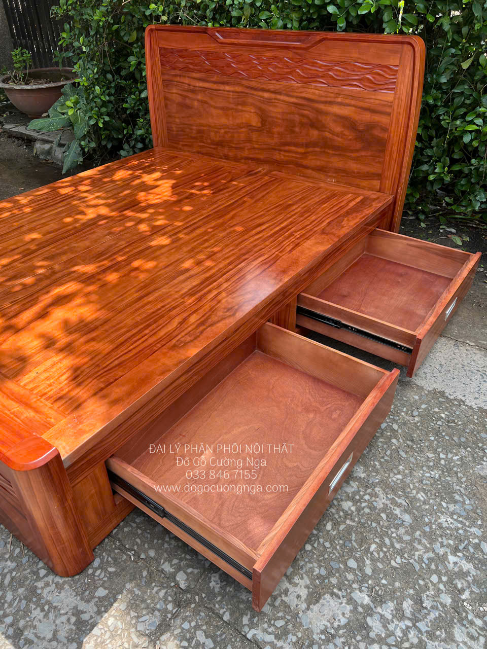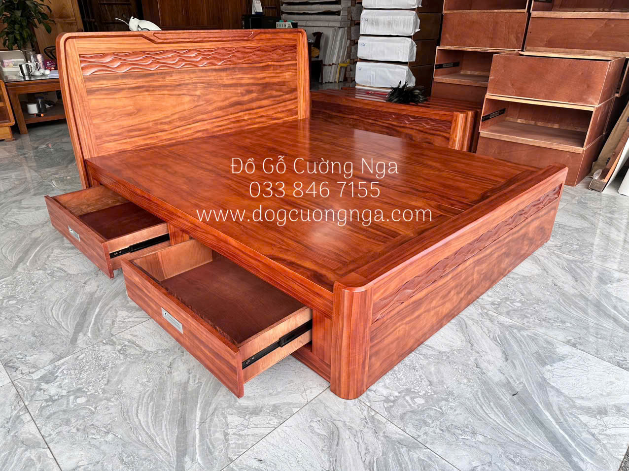 Giường Gỗ Cẩm Hộp Ngăn Kéo Phản Liền Mẫu Sóng Cao Cấp