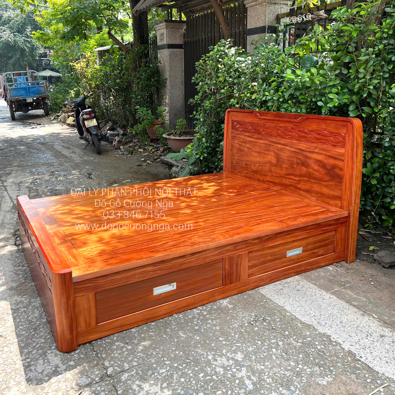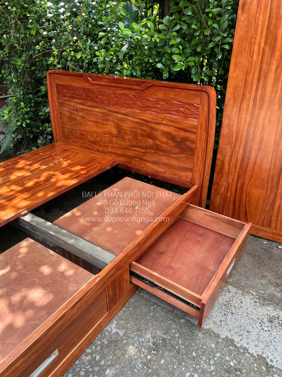 Giường Ngủ Gỗ Cẩm 2 Ngăn Kéo Siêu Tiện Nghi