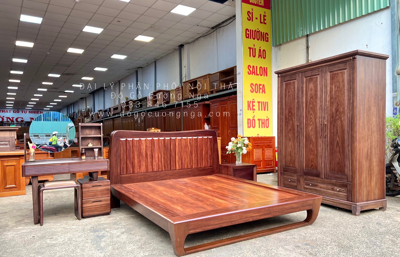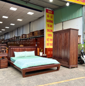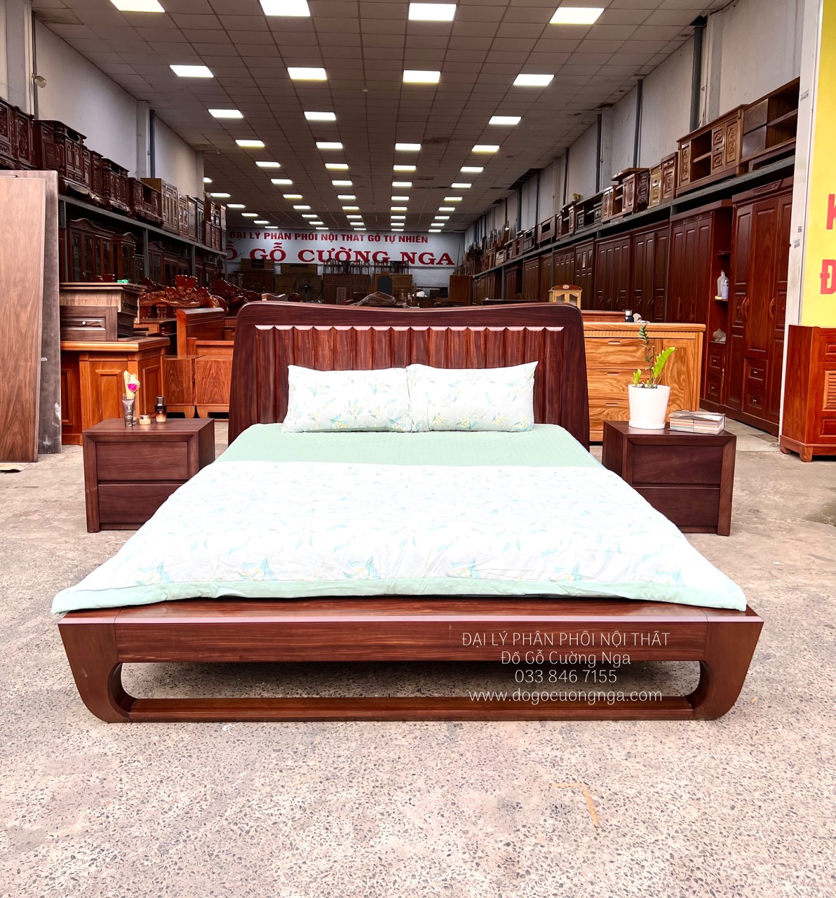 Giường gỗ cẩm kiểu hiện đại màu óc chó