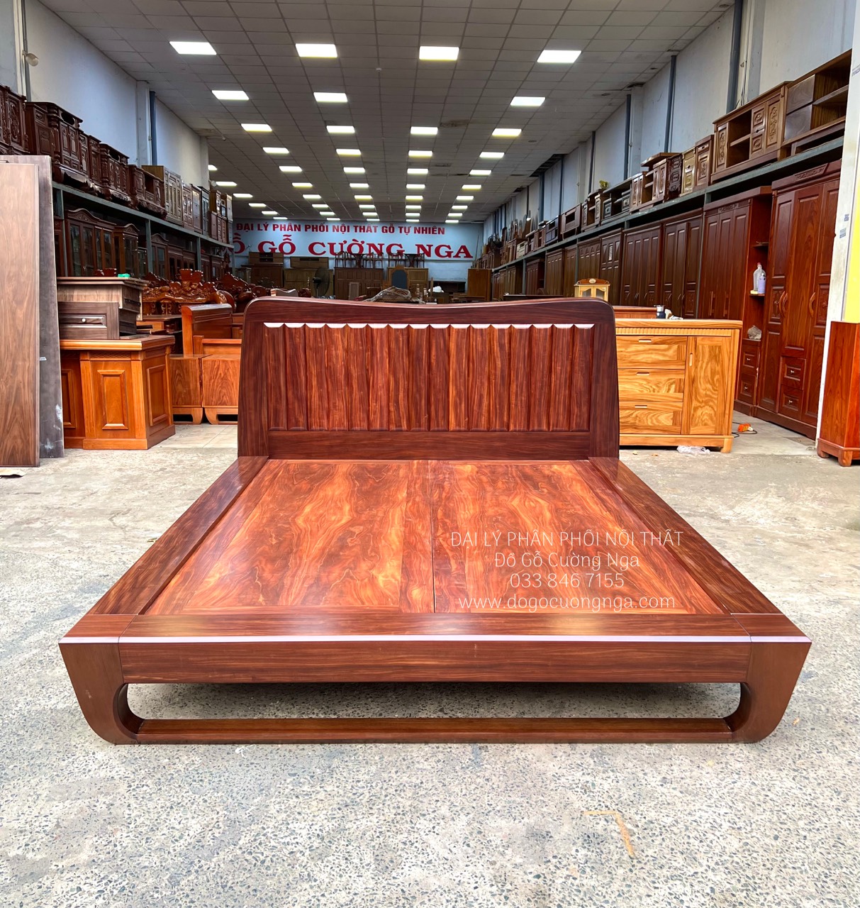 Giường Gỗ Cẩm Kiểu Nhật Màu Óc Chó Sang Trọng