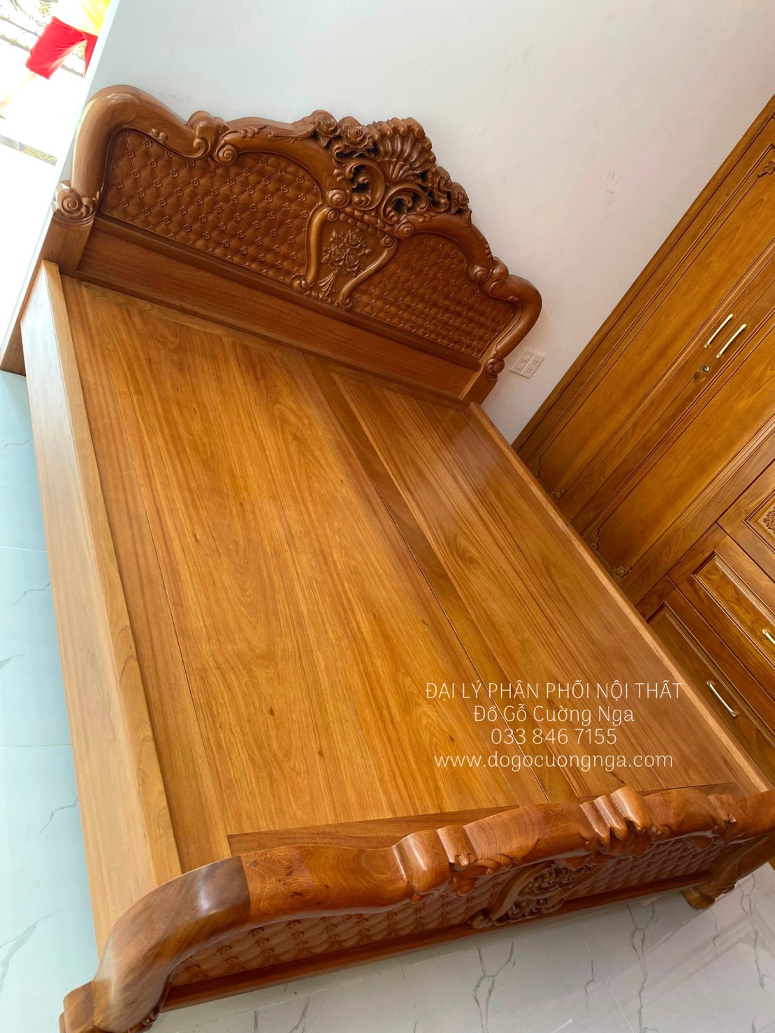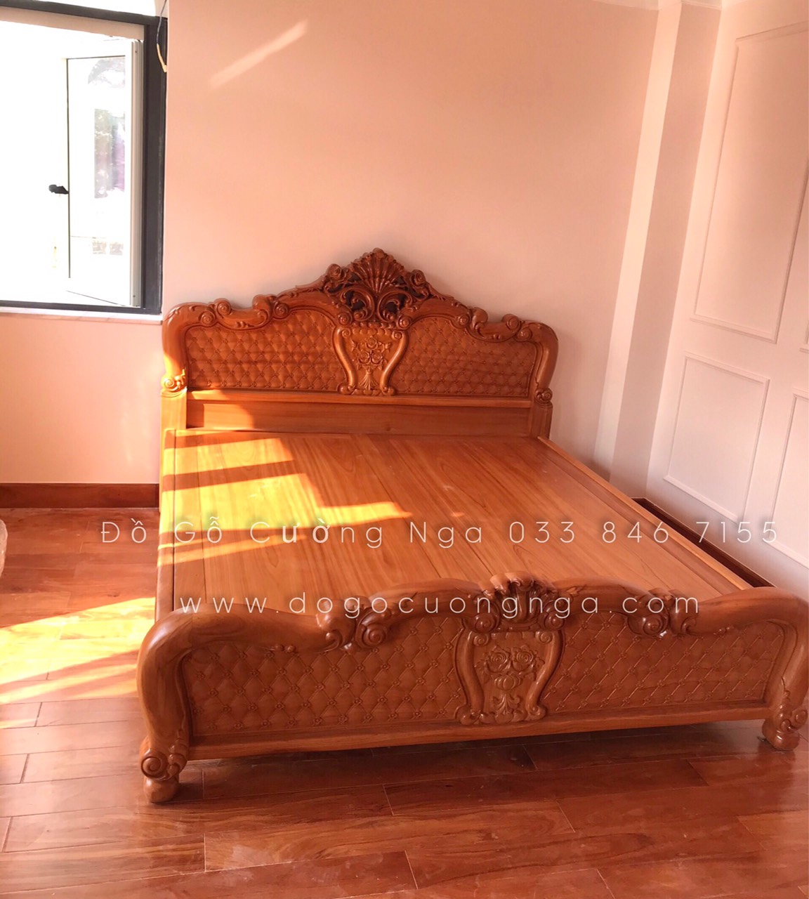Chi tiêt giường gỗ gõ đỏ giao khách
