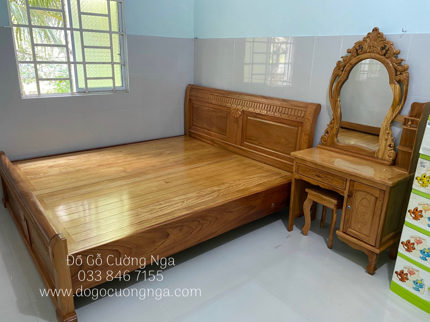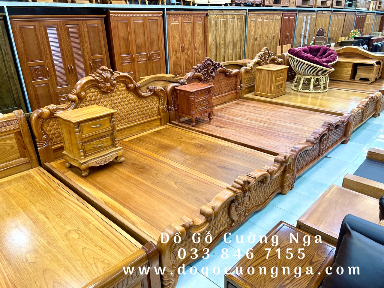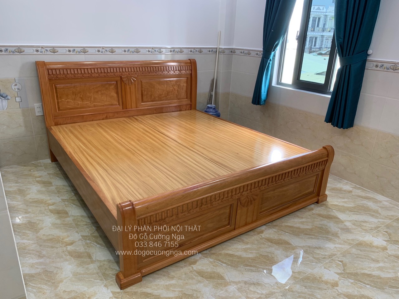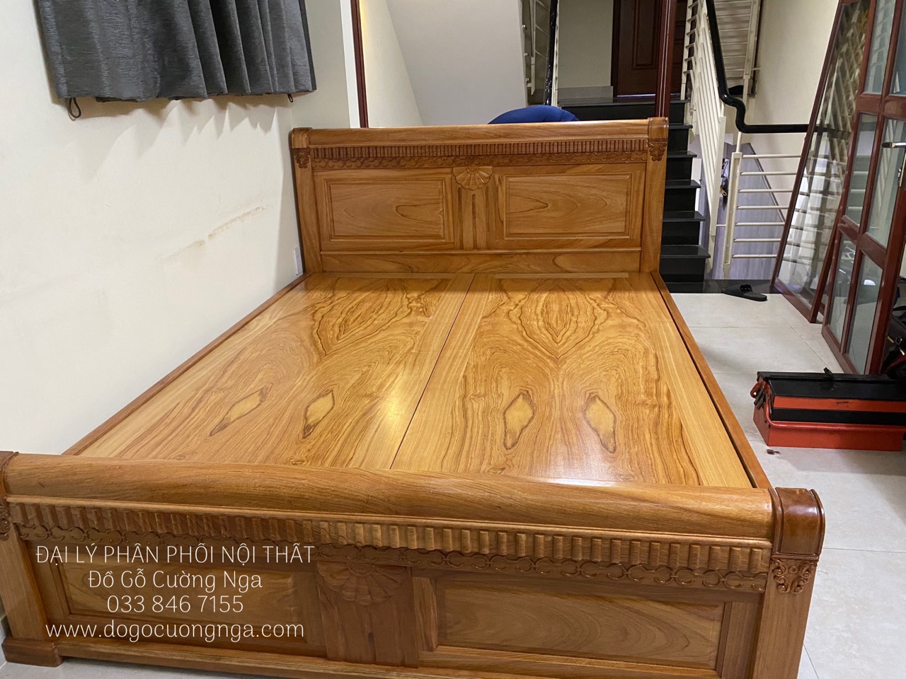 Chi tiết giường ngủ gỗ gõ đỏ giao khách
