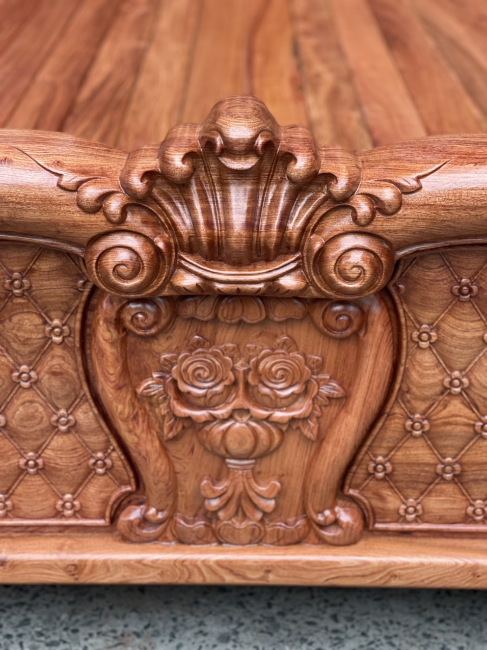 Giường ngủ gỗ Hương Đá mẫu hoa hồng là sản phẩm được rất nhiều Khách Hàng lựa chọn với gam màu tự nhiên của gỗ kết hợp với đôi bàn tay khéo léo của các nghệ nhân đã tạo lên một sản phẩm không chỉ đẹp về mặt thẩm mỹ mà còn đem lại cho bạn giấc ngủ ngon, thoải mái mỗi ngày. Giường gỗ tự nhiên mang lại vẻ đẹp riêng cho phòng ngủ và làm phòng ngủ của bạn trở lên ấm cúng, sang trọng.