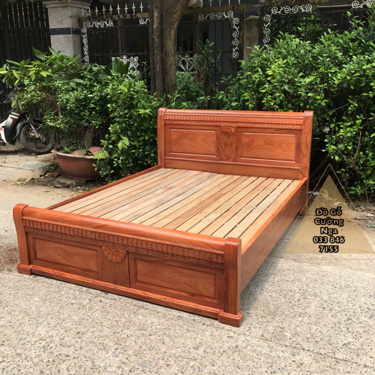 Giường gỗ hương đá mẫu quạt - vạt lan